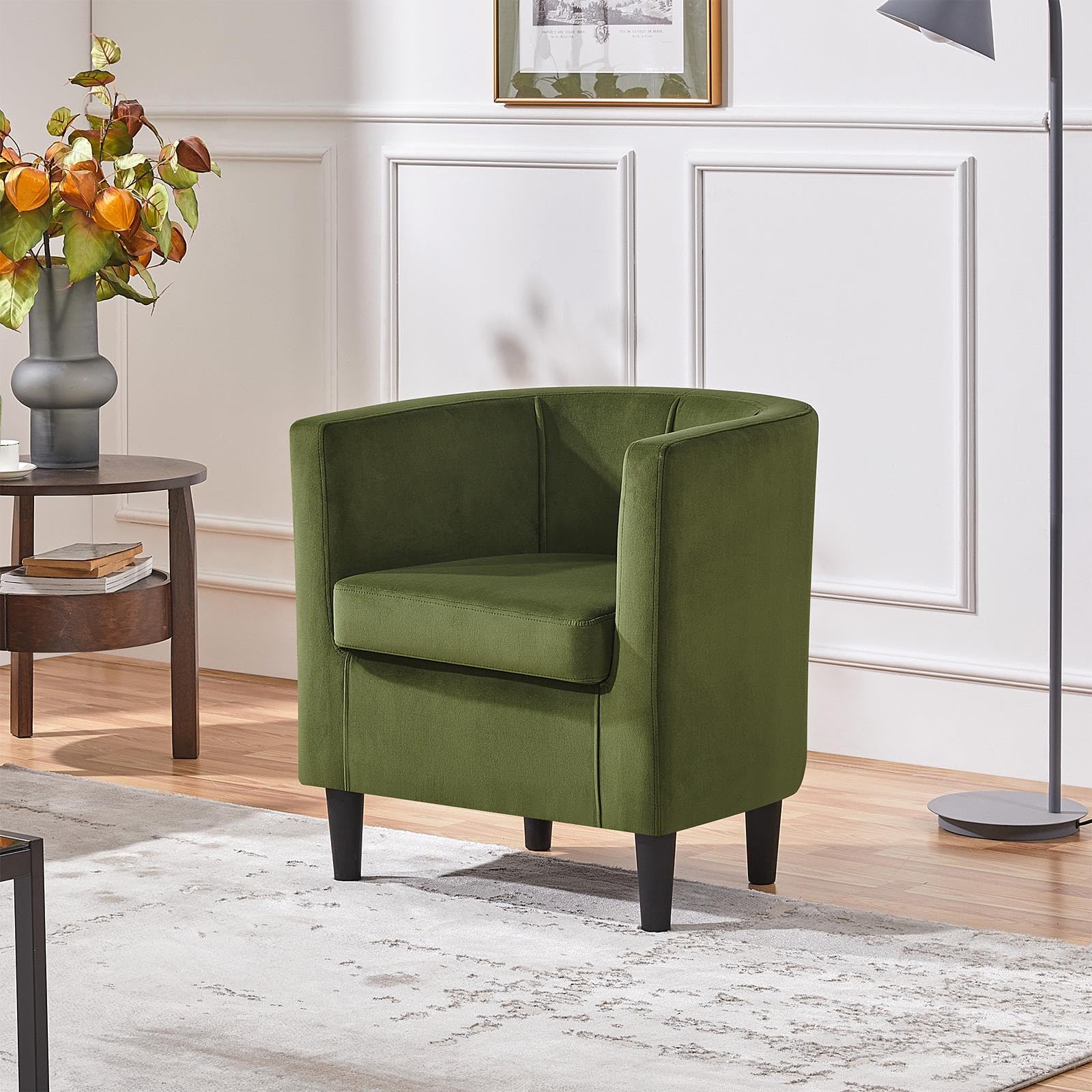 Modern and Comfortable Armchairs, Upholstered Barrel Sofa Chair for Living Room Bedroom Waiting Room, Olive Green