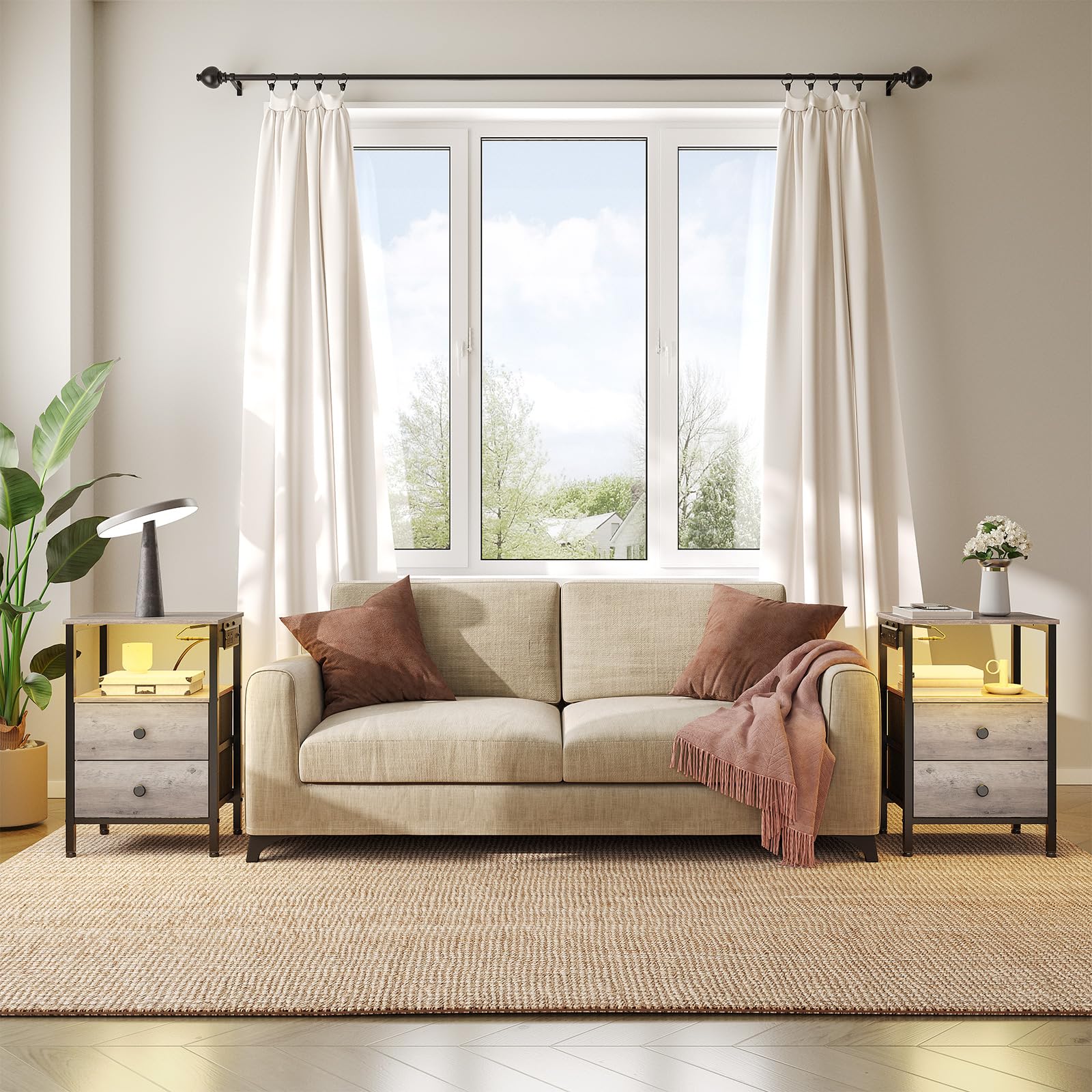- The end table features 2 spacious non-woven drawers, offering ample space for organizing daily items. Keep your space tidy and orderly by neatly placing small items like documents, books, and remote controls in these drawers