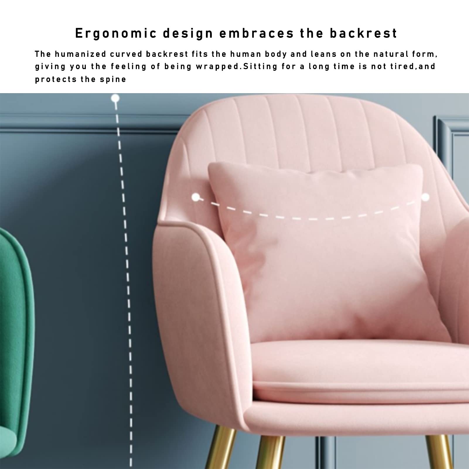 1 Pcs Velvet Dining Chair, for Living Room Bedroom Kitchen Chair with Metal Legs Apartment Makeup