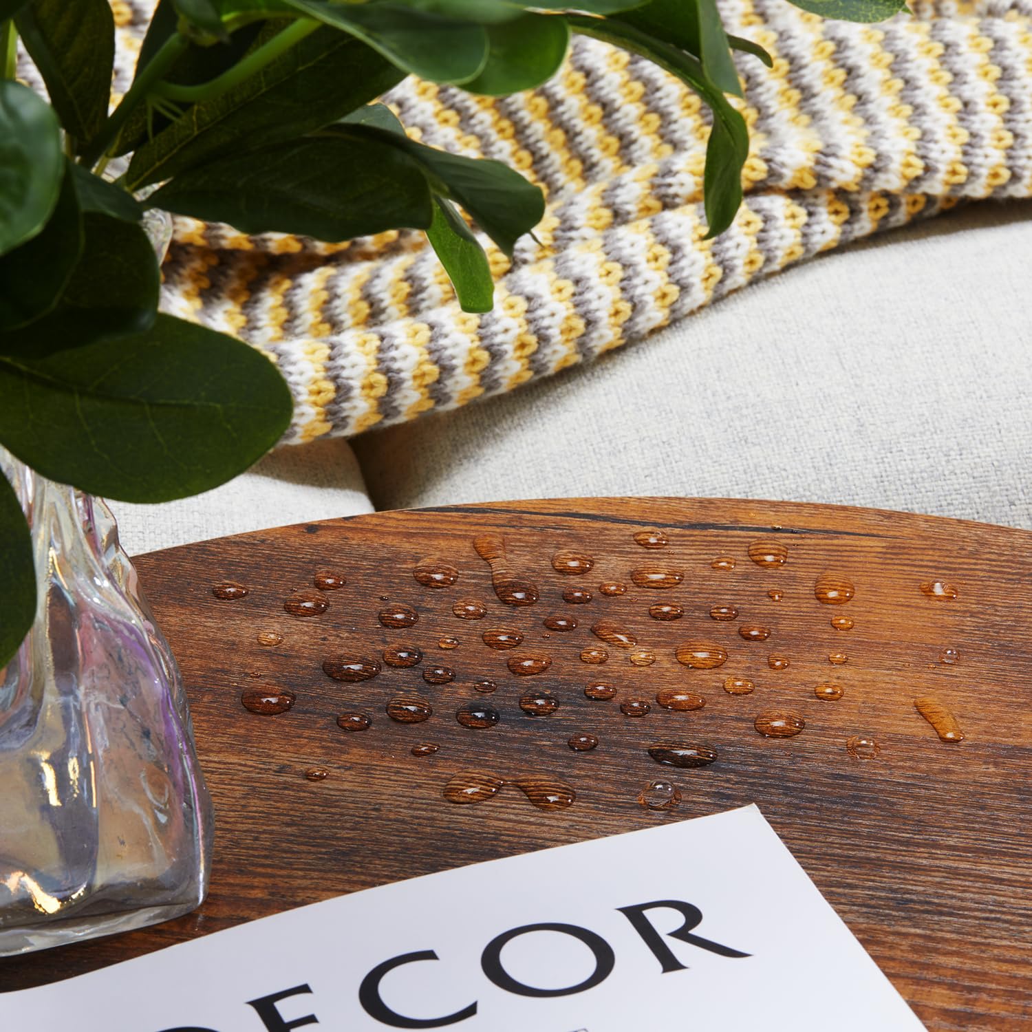 - The round coffee table serves as a functional and aesthetic centerpiece in the living room. Its spacious surface area provides a convenient spot for placing beverages, snacks, and reading materials during gatherings or relaxation time. Beyond its practical utility, the table adds a touch of elegance to the room with its sleek design and rich wood finish, complementing the surrounding furniture.