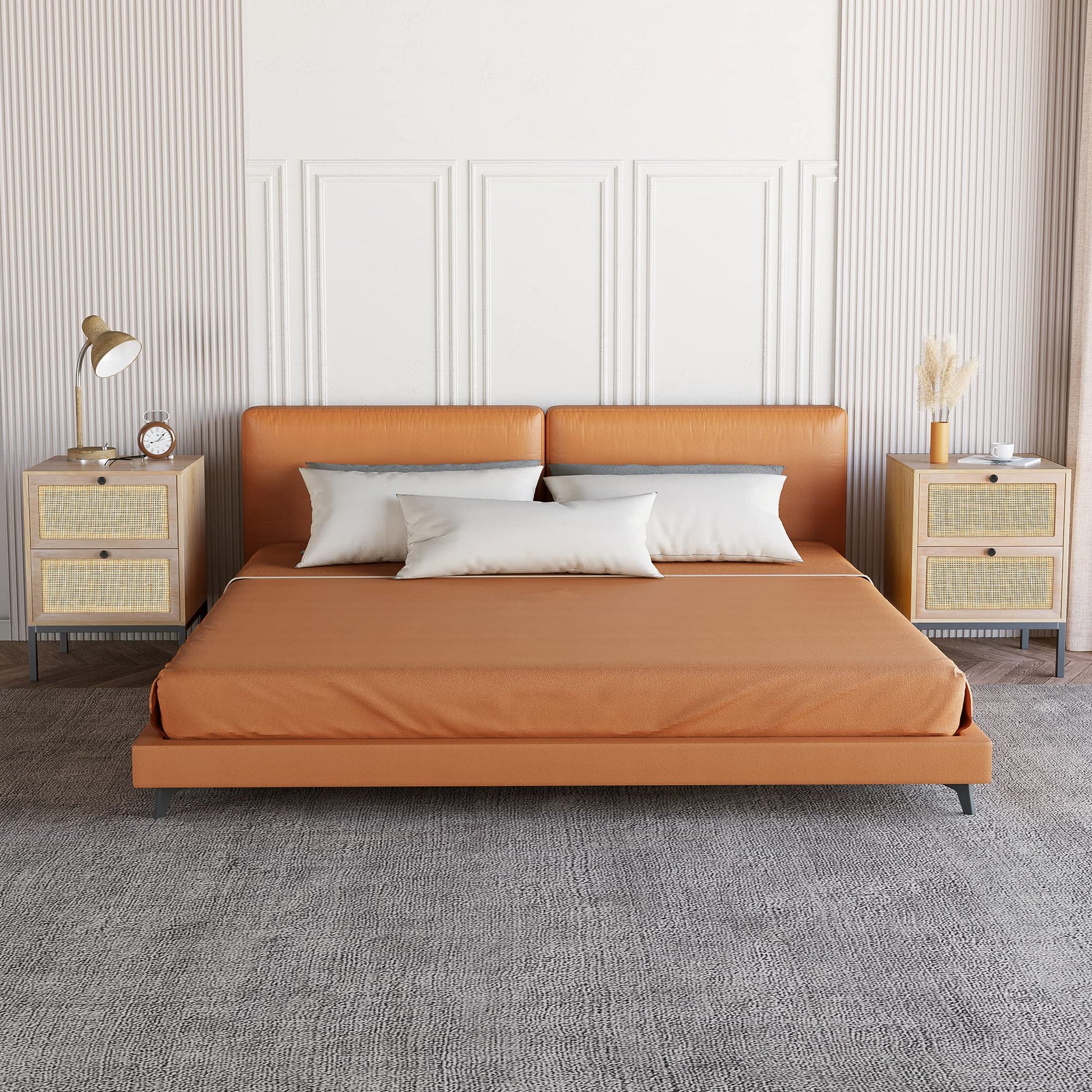 - The night stands for bedrooms set of 2 is made of high-grade MDF Board and metal,the handmade natural rattan, the metal legs structure make the side tables sturdy, durable and long service life, ensure no harm and odorless.