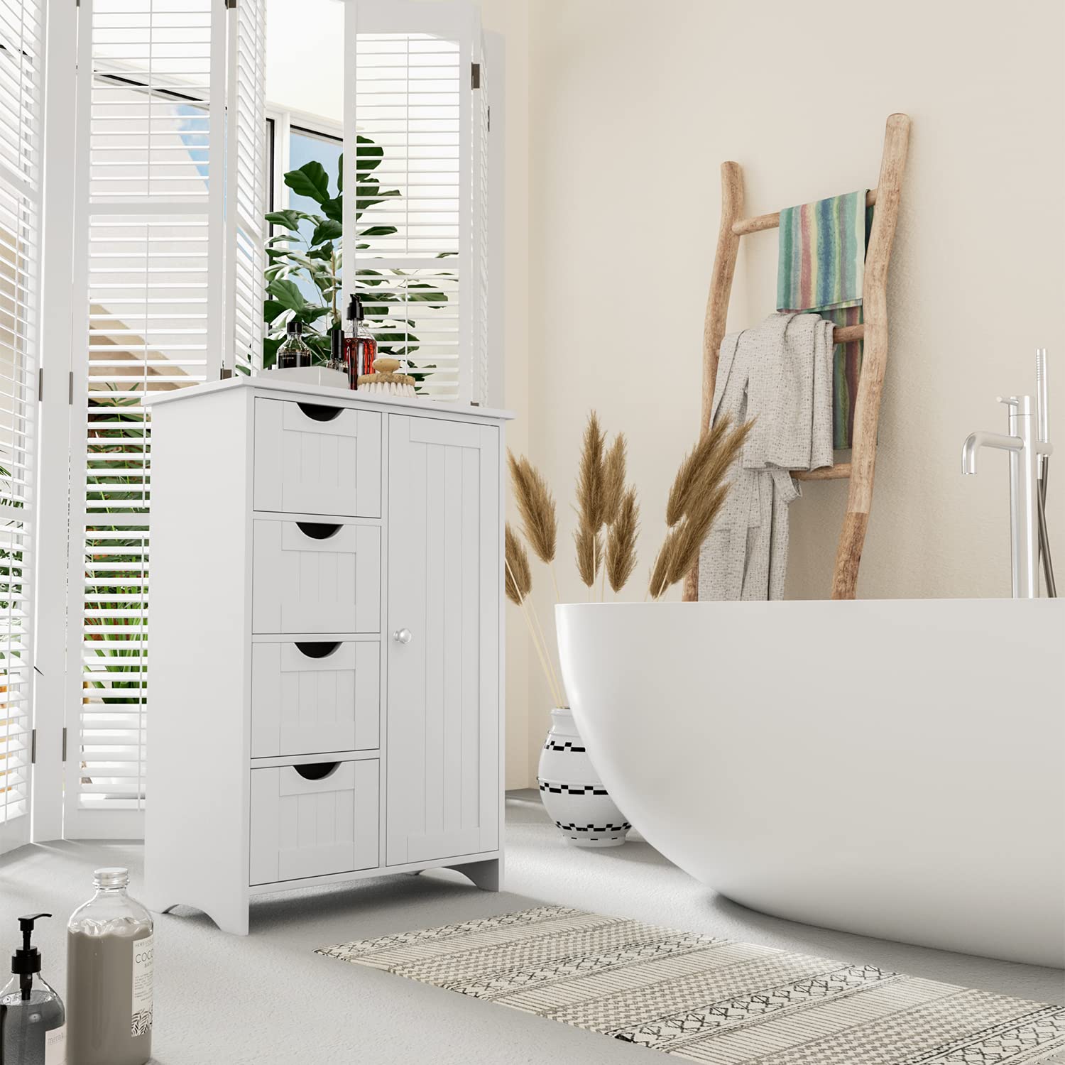 - Enough storage space: This wood cabinet has multiple storage space to meet your different storage needs. It features four deep drawers and 2-tier cabinet will nicely organize your common household products, You can also decorate the tabletop with candles and other objects to add color and character to your bathroom or other room. This is a practical piece of furniture for bedrooms, living rooms, kitchens, etc.