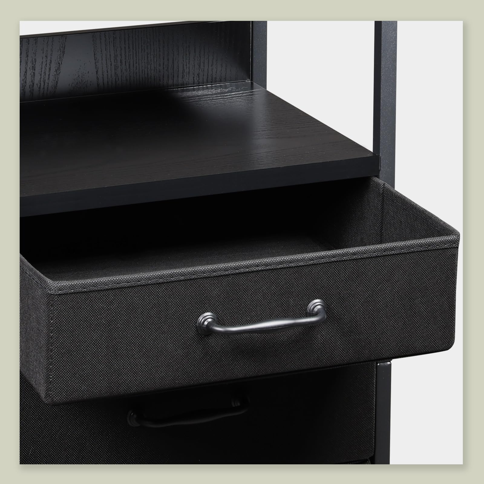 - 3 fabric drawers and an open shelf on the small dresser provide enough space to store bedside items such as books, devices and remotes, making your bedroom space well organized.