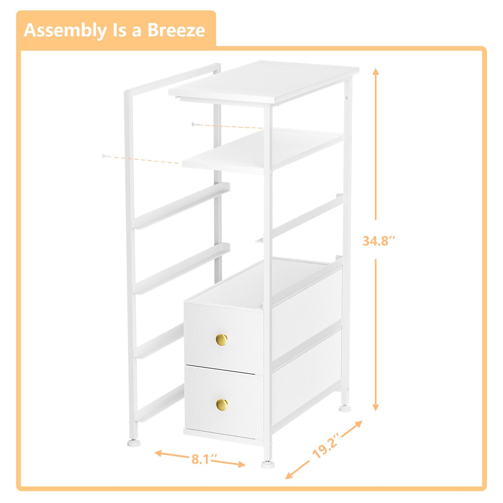 - Measuring 19.2''D x 10''W x 34.8''H, it’s slim enough to fit small spaces and be a perfect dresser besides vanity desk, office desk or even for bedside or bathroom storage