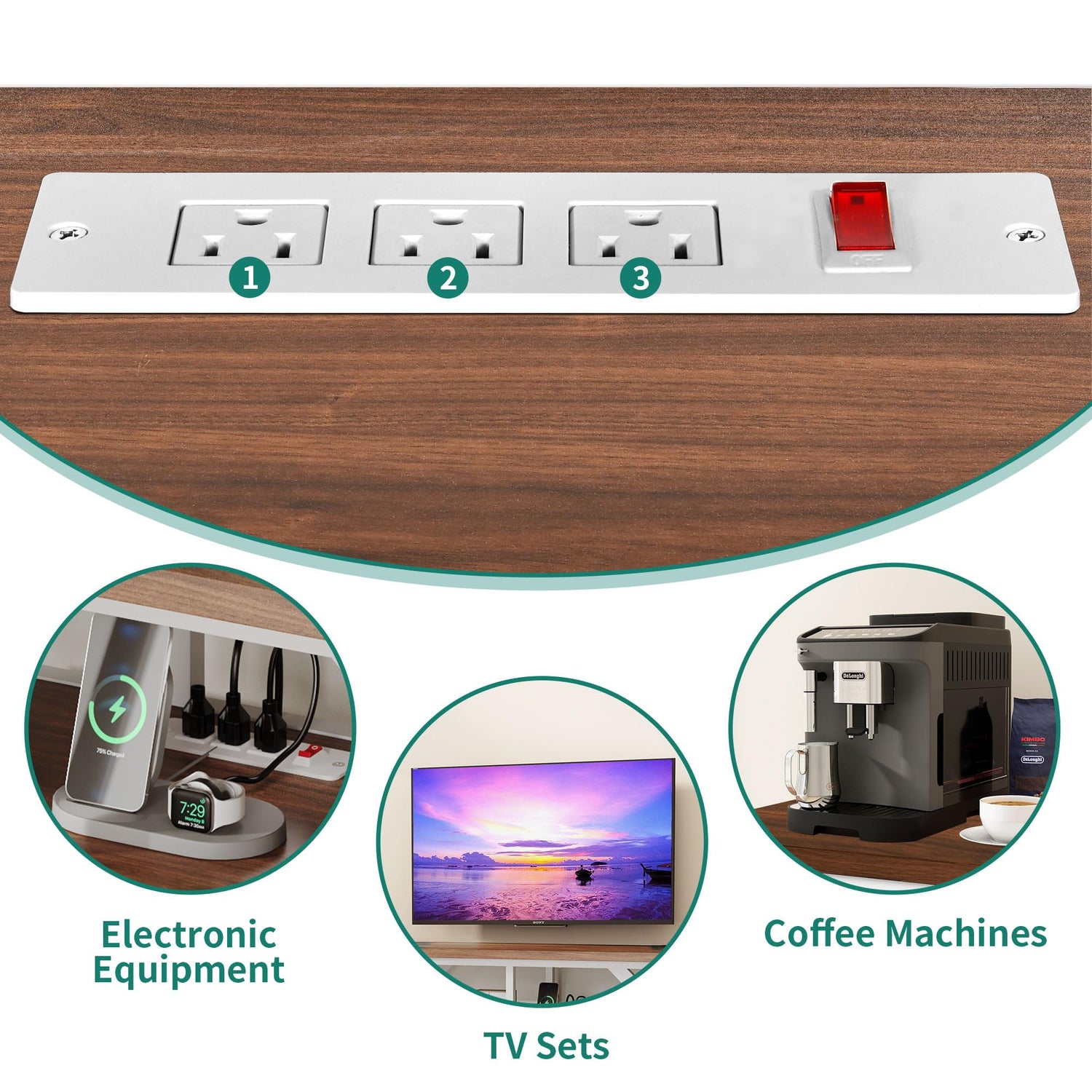 - Our console table features a built-in power outlet for hassle-free setup. Connect Cell phones, tablets, record players, and more seamlessly, blending elegance and practicality for a sophisticated experience