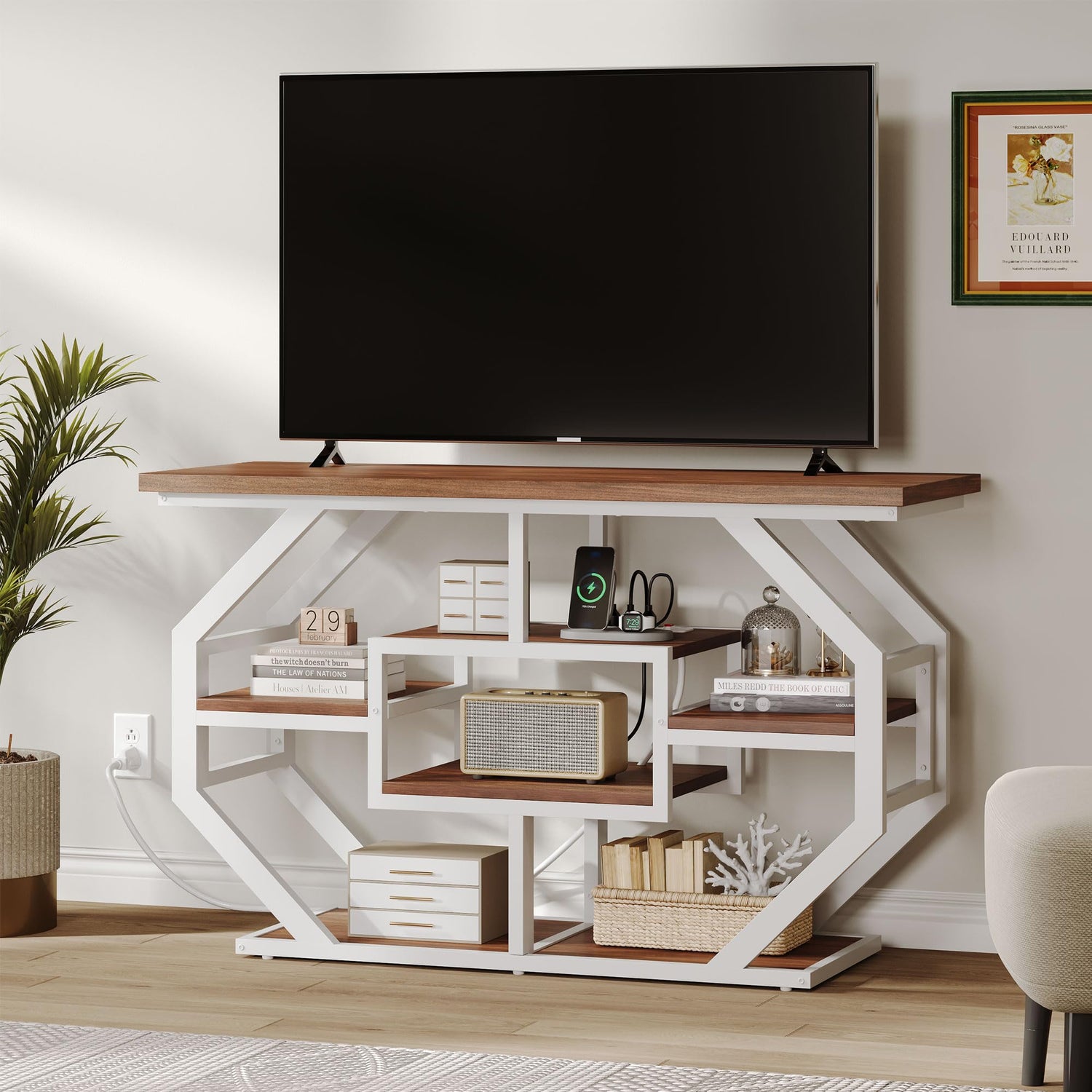 51 Inch Console Table Sofa Table with Power Outlets, Modern Entryway Table Foyer Table