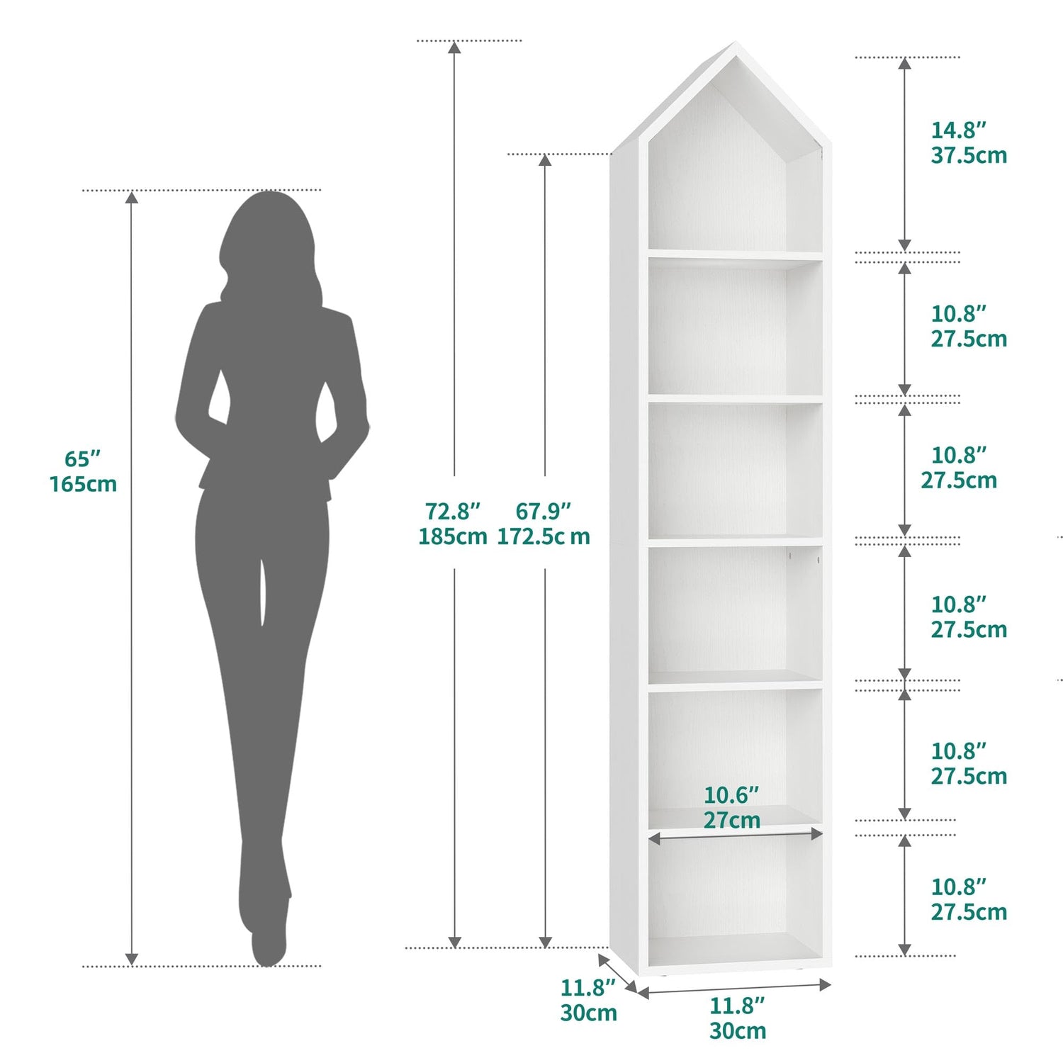 - Tall Narrow Bookshelf: Our 11.8"W × 70.8"H cube book shelf fits snugly into any small corner of your home. It's versatile, serving as an open bookcase for home office, a stylish display rack for the living room or bedroom, a charming plant stand for the balcony, or a kitchen storage shelf