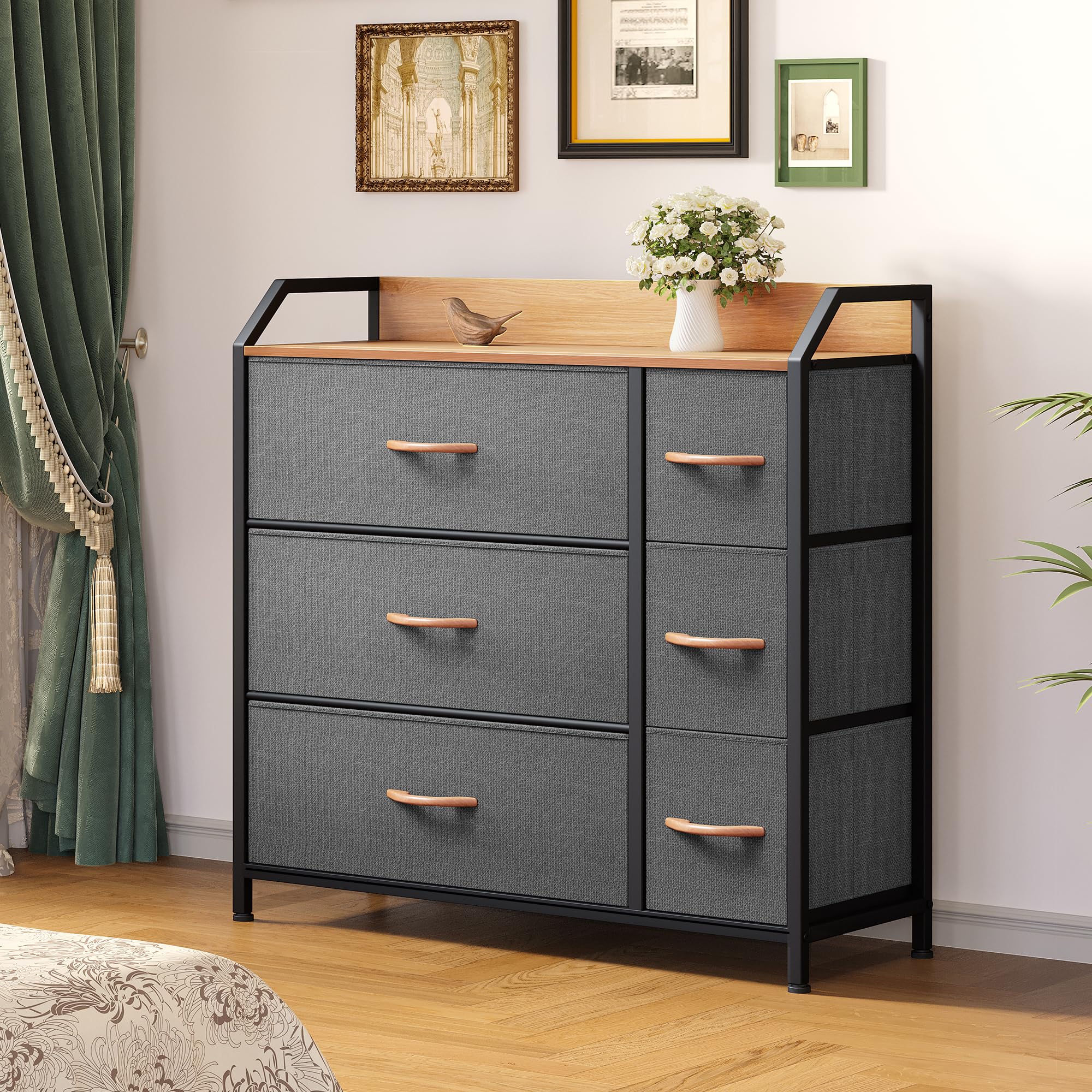 - QUALITY CONSTRUCTION- Made from reliable metal frame and durable MDF wooden top; 6 removable and foldable drawers; Easy pull fabric handles help conveniently open and close the drawers; 4 adjustable plastic feet help protect your floor from scratches.