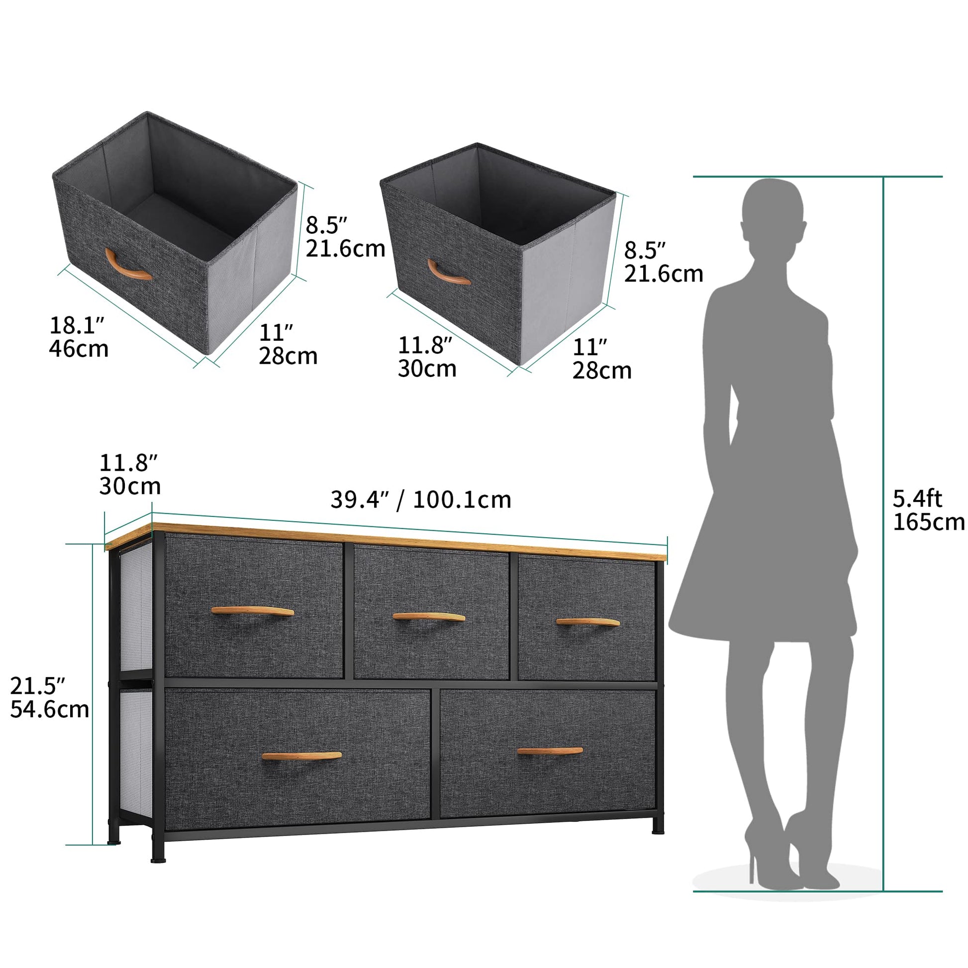 Dresser with 5 Drawers - Fabric Storage Tower, Organizer Unit for Bedroom, Living Room