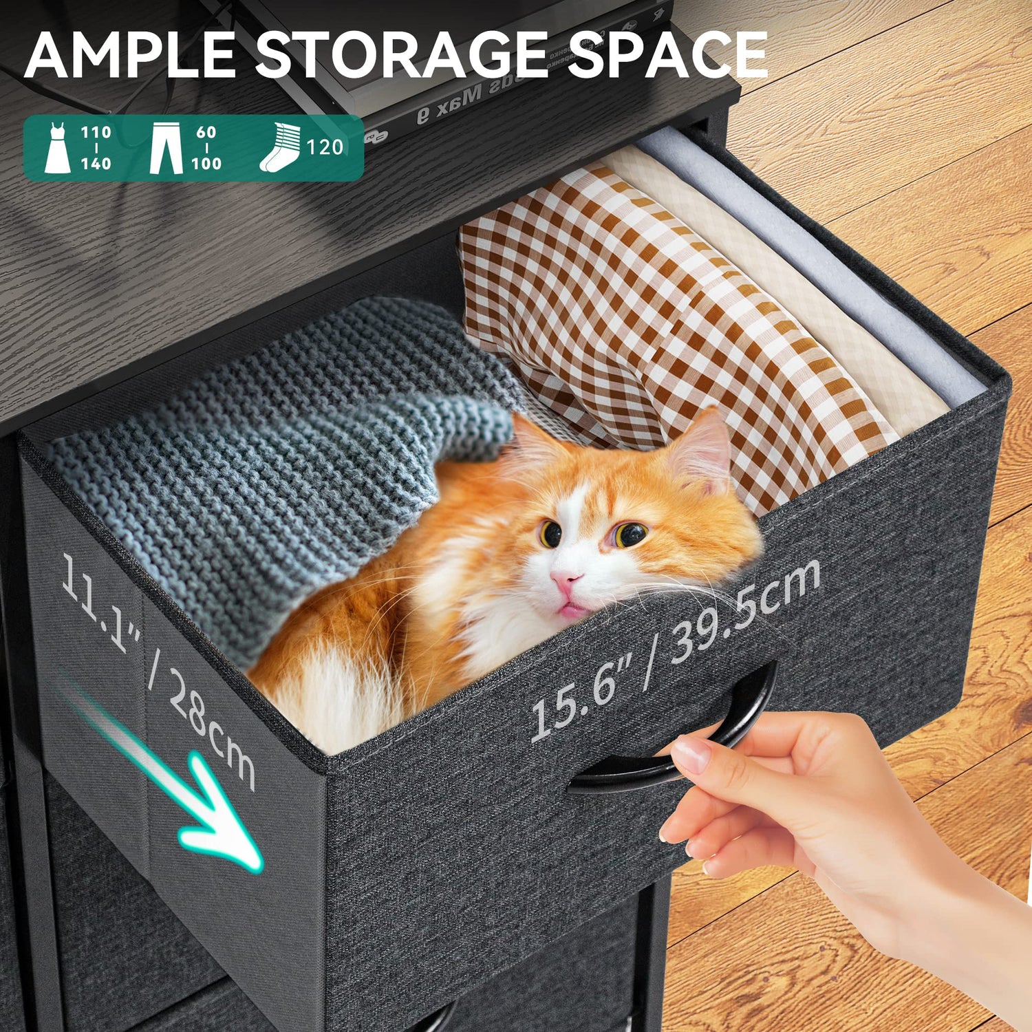 - Universal Match - The drawer organizer have premium black grey fabric drawers, sturdy white metal frame and wooden tabletop give the storage organizer a modern style. This dresser easily fits in various living spaces: living rooms, bedrooms, hallways, entryways, closets, etc.