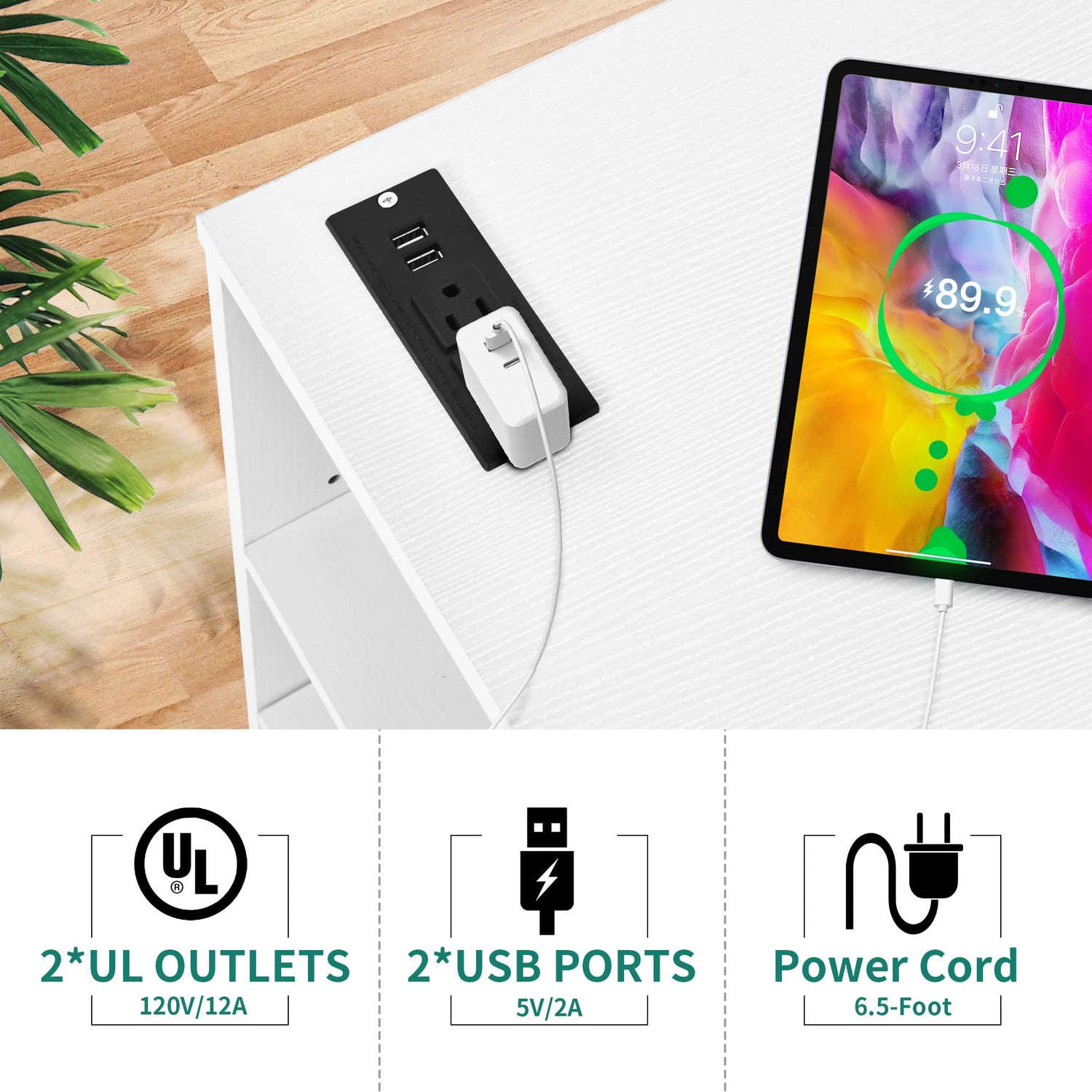 - With 2 UL-Listed outlets, 2 USB ports and a 6.5-foot power cord at your fingertips, this wood file cabinet can charge your printer, lamp, phone, Ipad, laptop simultaneously during work or study