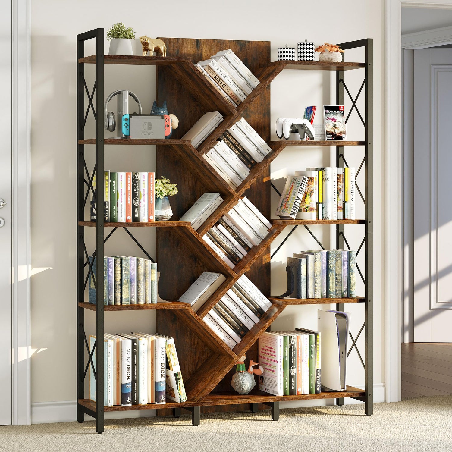 - Tree Bookshelf Design: This large bookshelf combines a 5-tier bookcase with a tree-shaped design, providing you with ample storage space. The tree design combines beauty and functionality to enhance any room