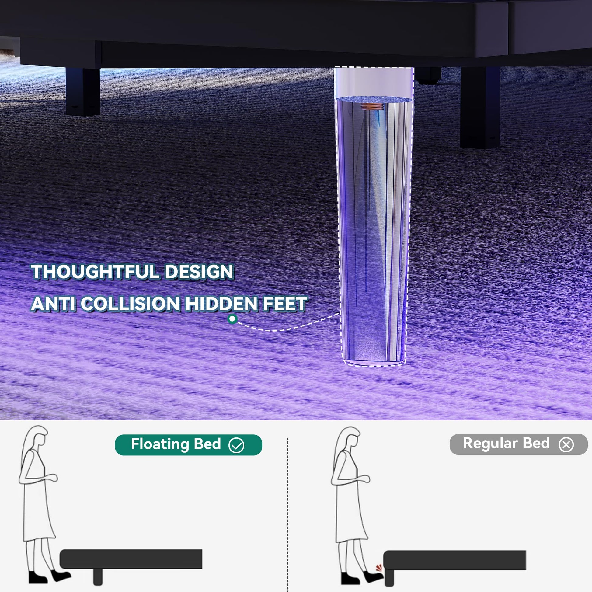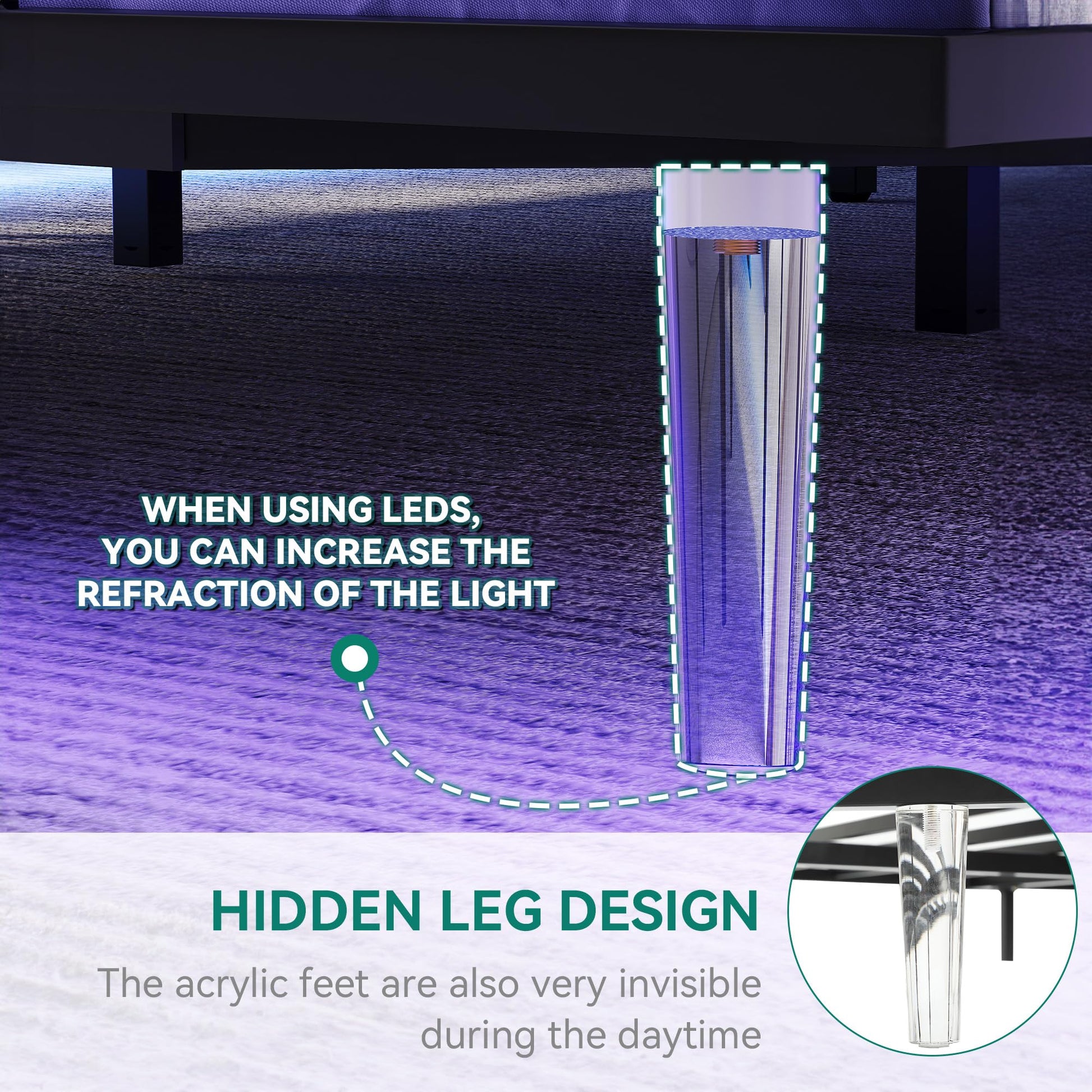 - Sturdy Acrylic: Crafted from solid acrylic material, this LED bed frame boasts a sturdy construction that exudes a captivating floating effect, visible even in daylight; Distinguished by its innovative design, the piece stands out from conventional iron bed frames