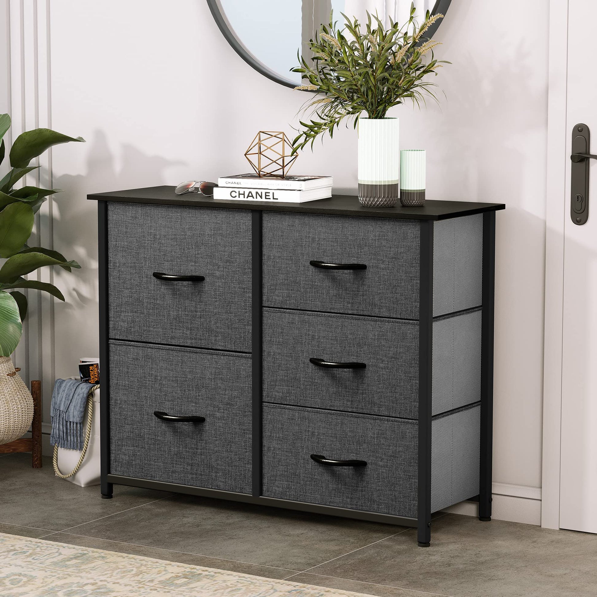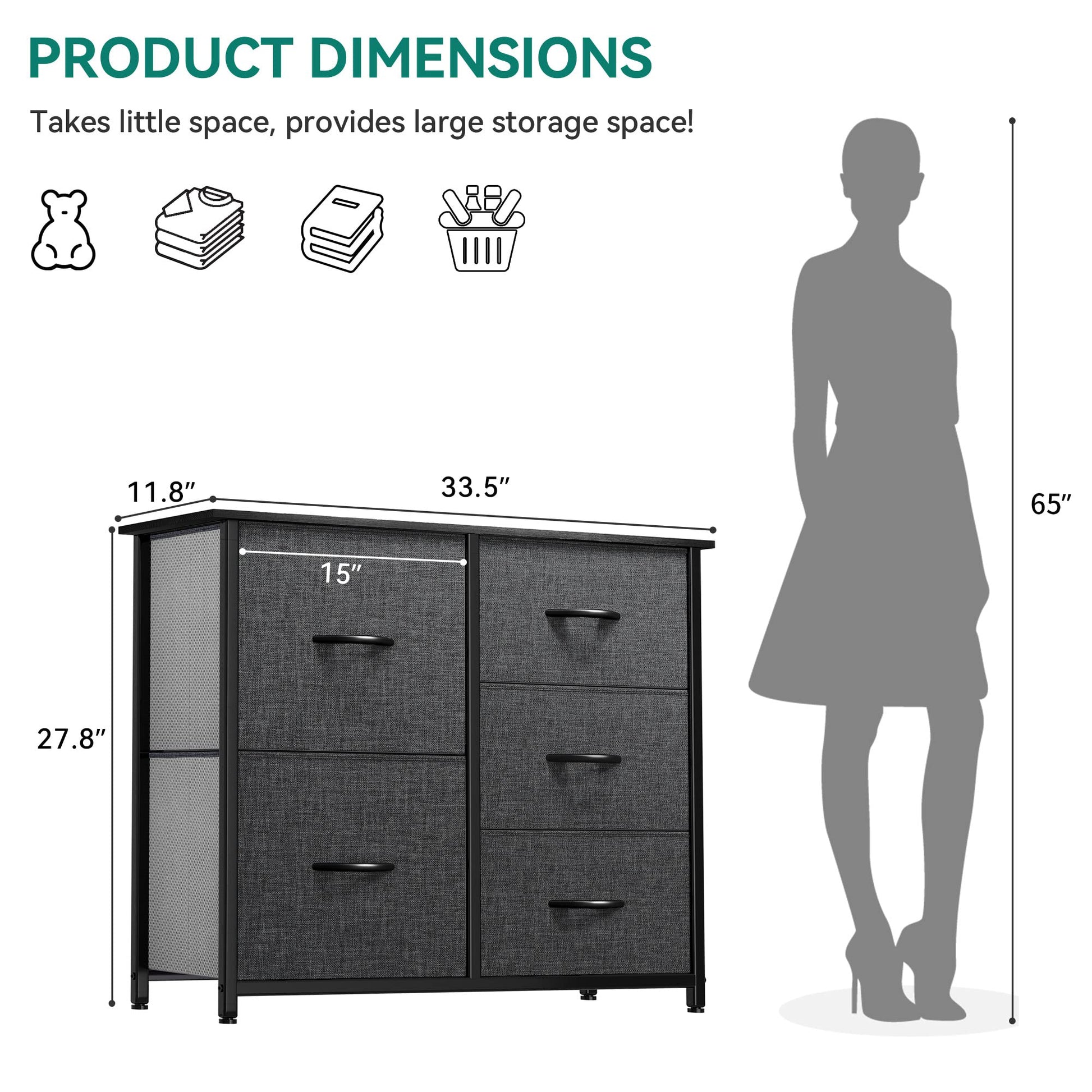 - PORTABLE DRESSER- The dresser for bedroom has 5 foldable deep drawers, with easy-to-pull plastic handles rounding out the design; High quality non-woven synthetic fabric is easy to care