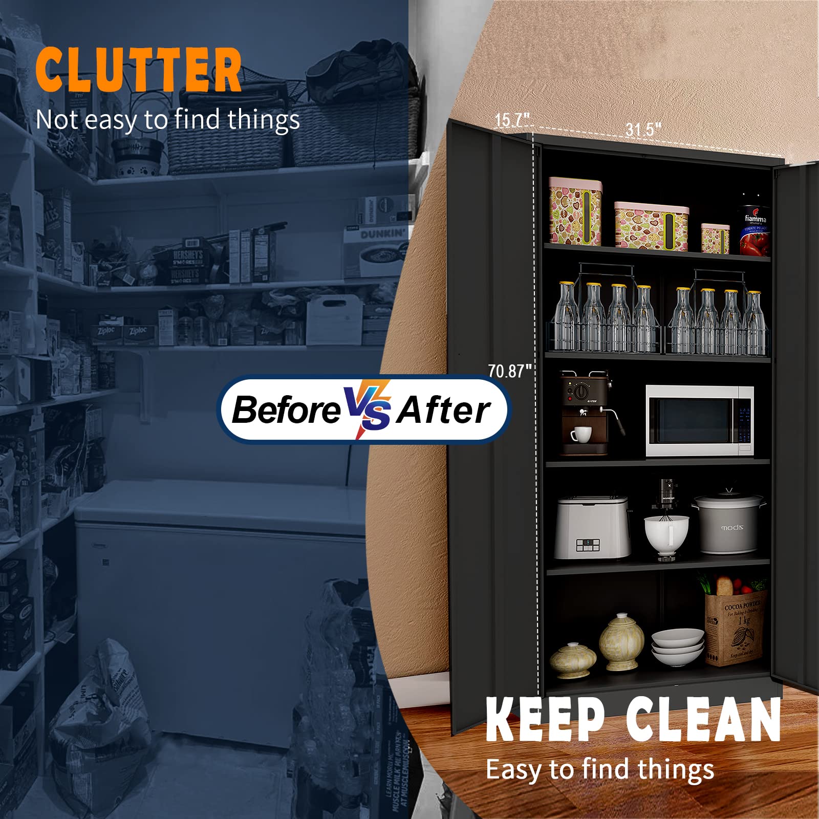 - Our tall metal cabinet equipped with lock and 5 adjustable shelves to provide adaptability and convenience. High-grade lock picking to secure valuables, two keys are included. Regardless of what your storage needs are, you have the ability to create a unique storage space to suit them.