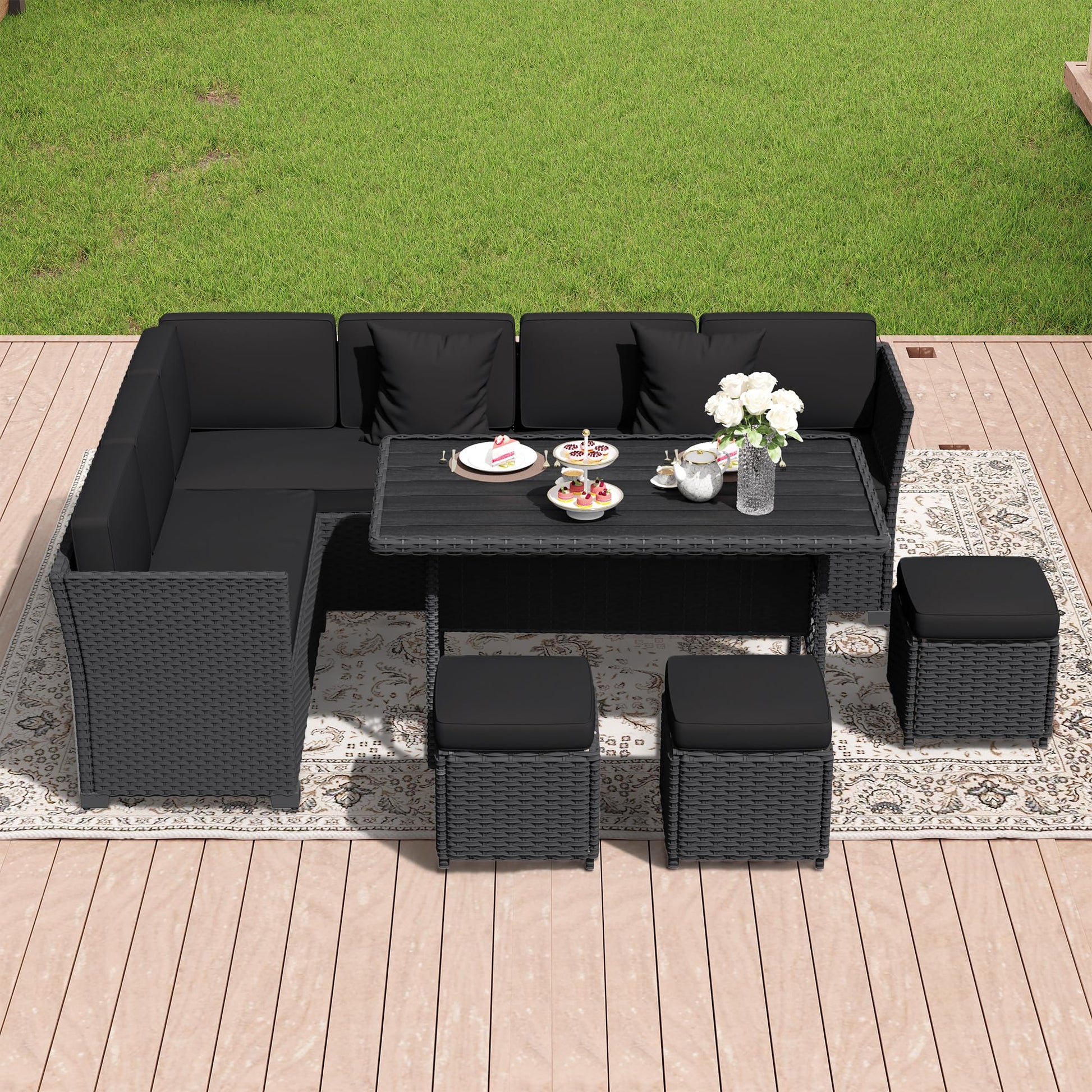 Patio Furniture Set, 7 Pieces Outdoor Dining Sets (Black-Black, B-7 Pieces)