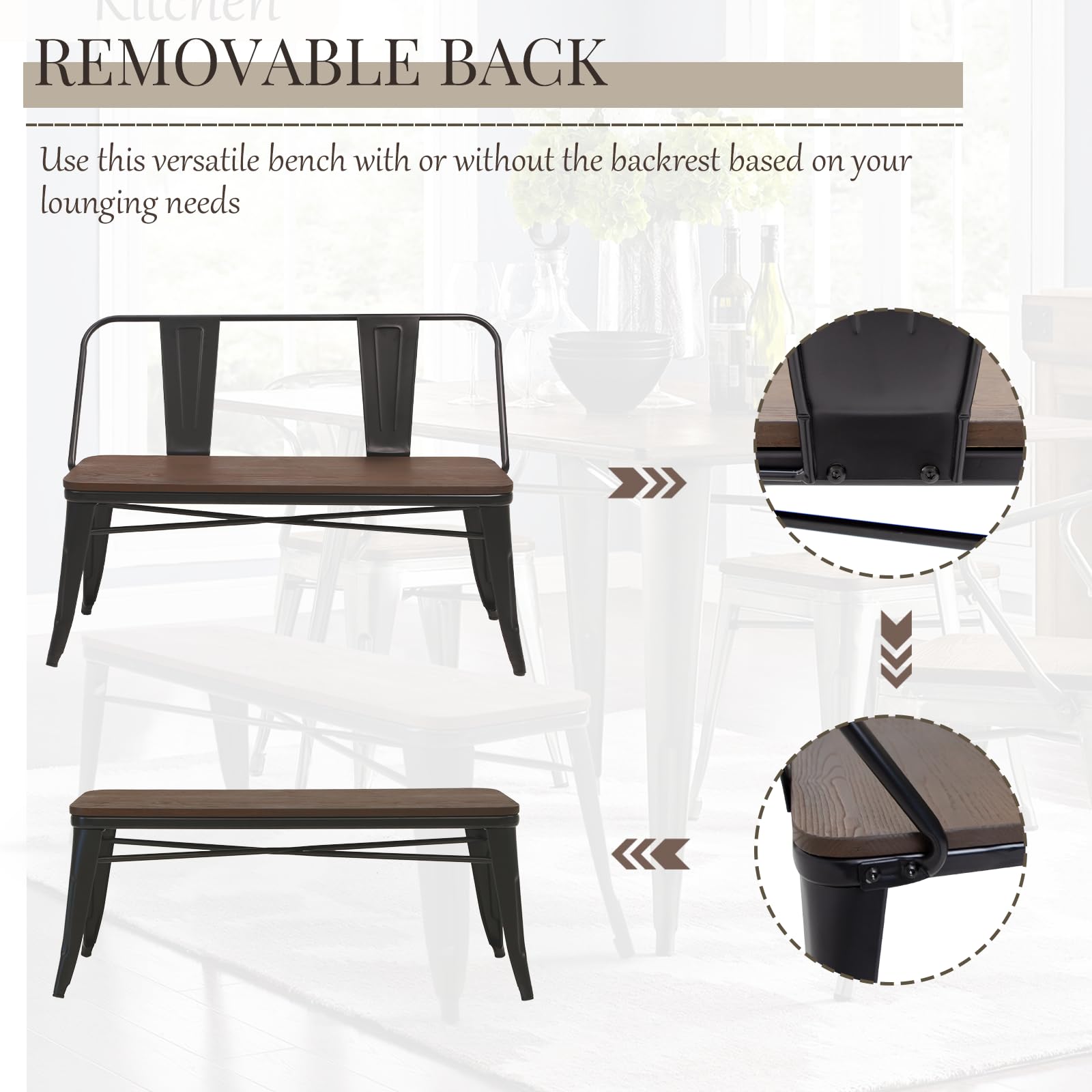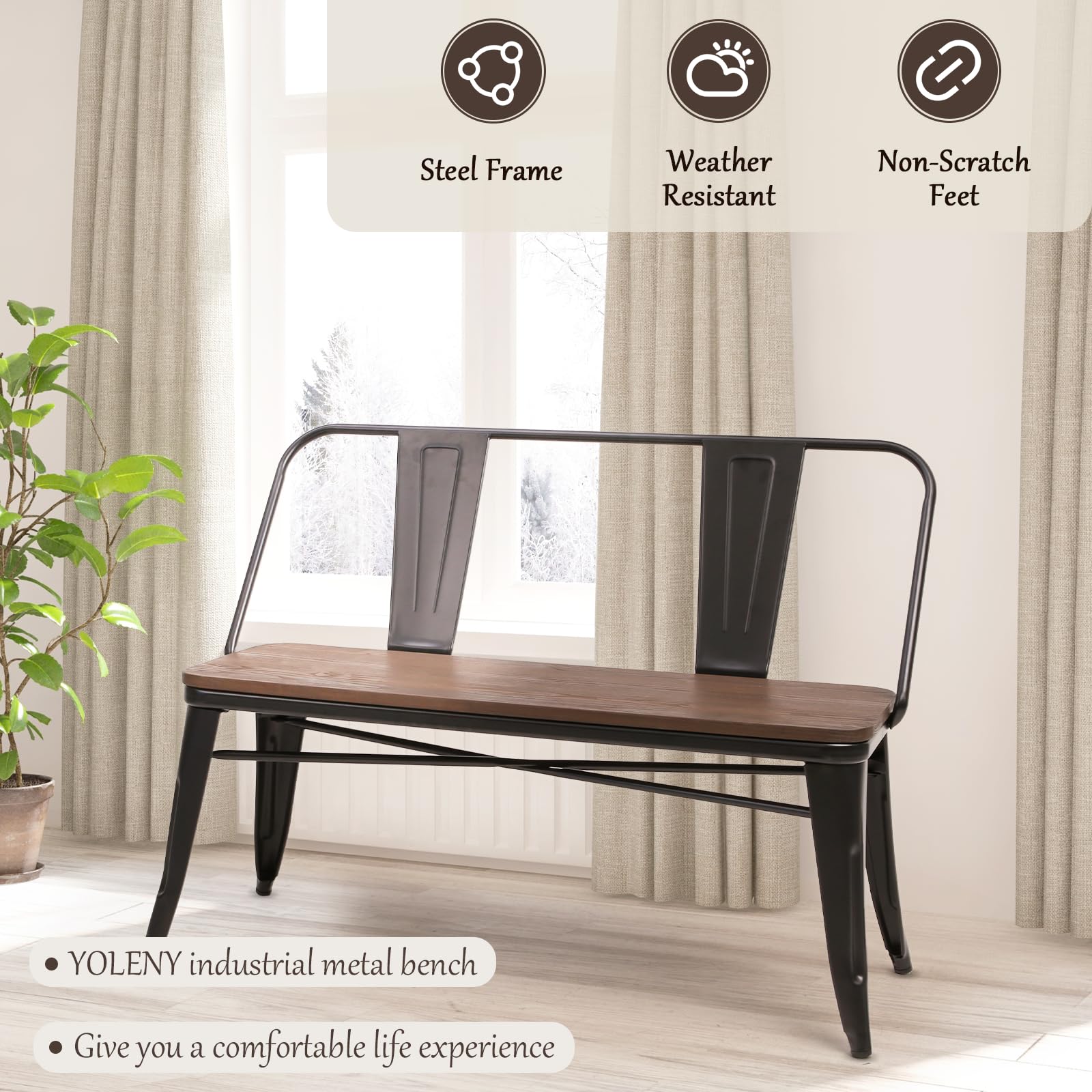 Dining Bench, Entryway Bench with Back, Farmhouse Metal Dining Bench