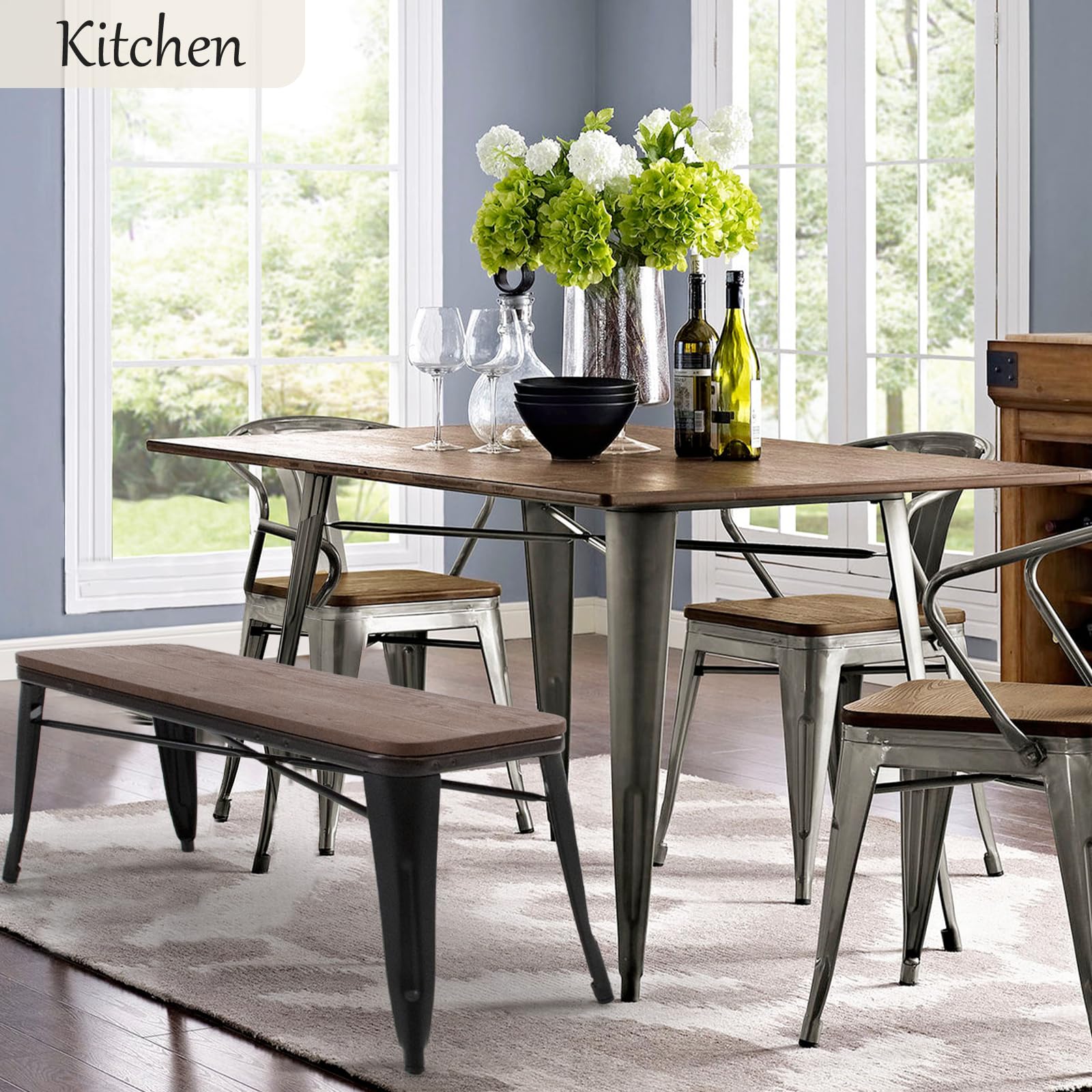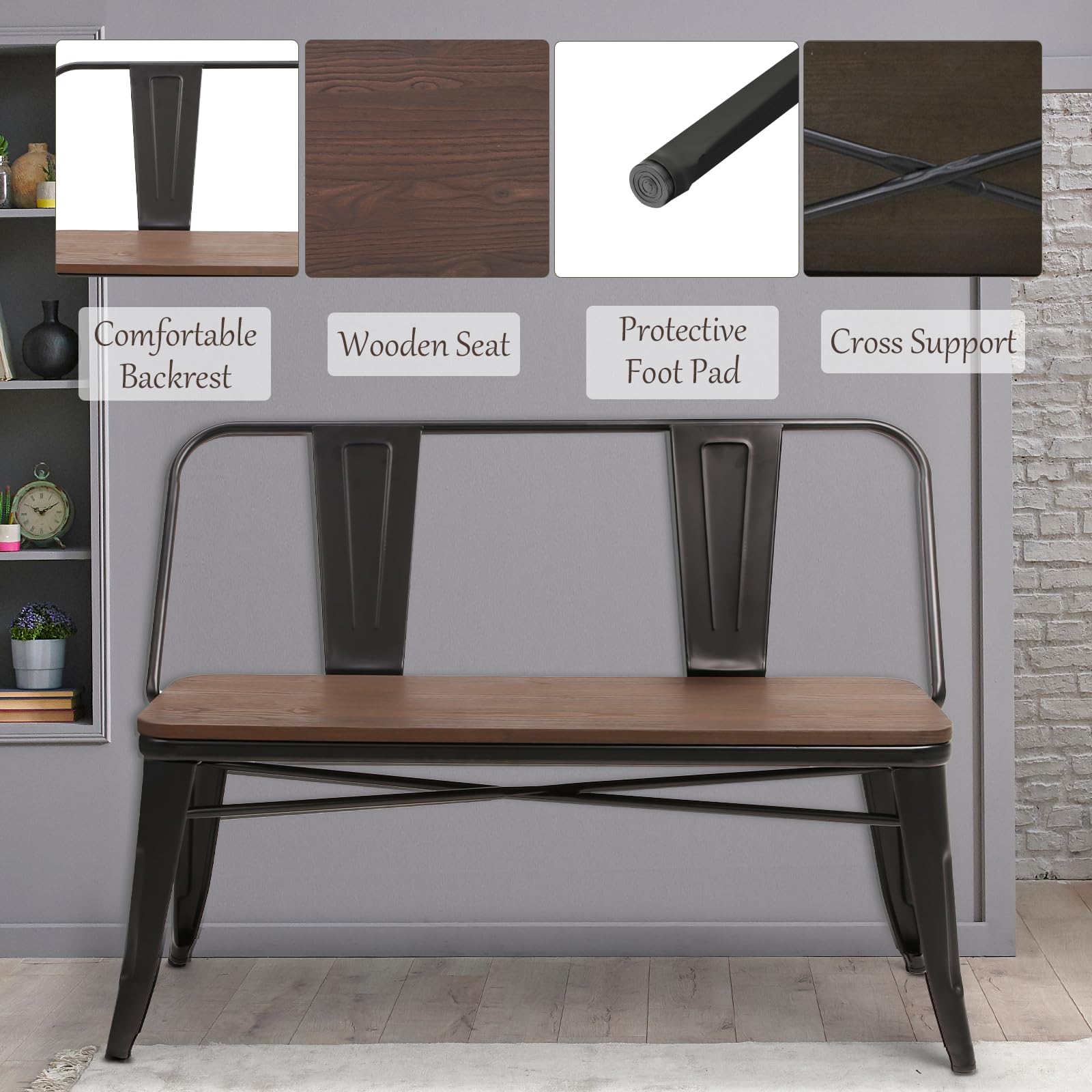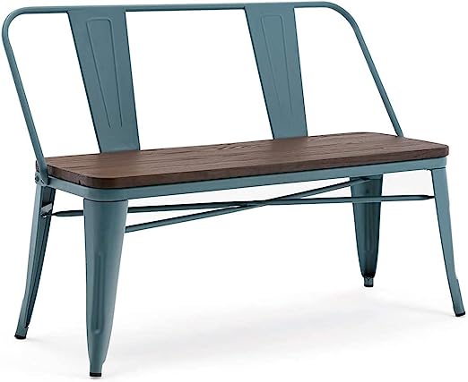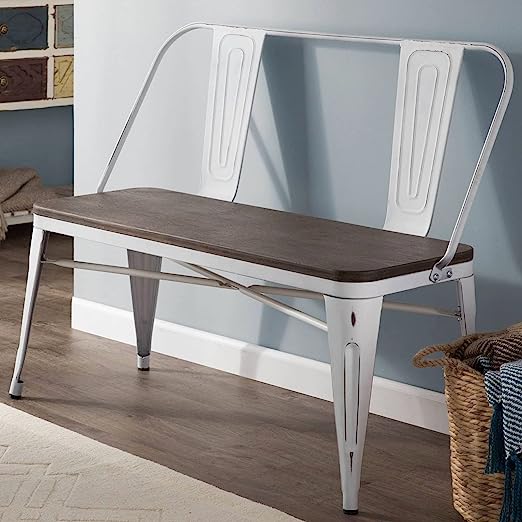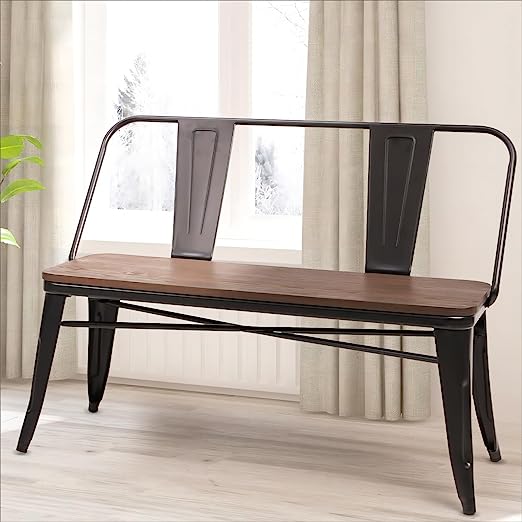 - High-Quality Materials: The industrial bench is made of 100% steel in a distressed metallic color with a powdered coating. Solid wood top not only provides comfortable seating but also allows dining room benches to last longer.