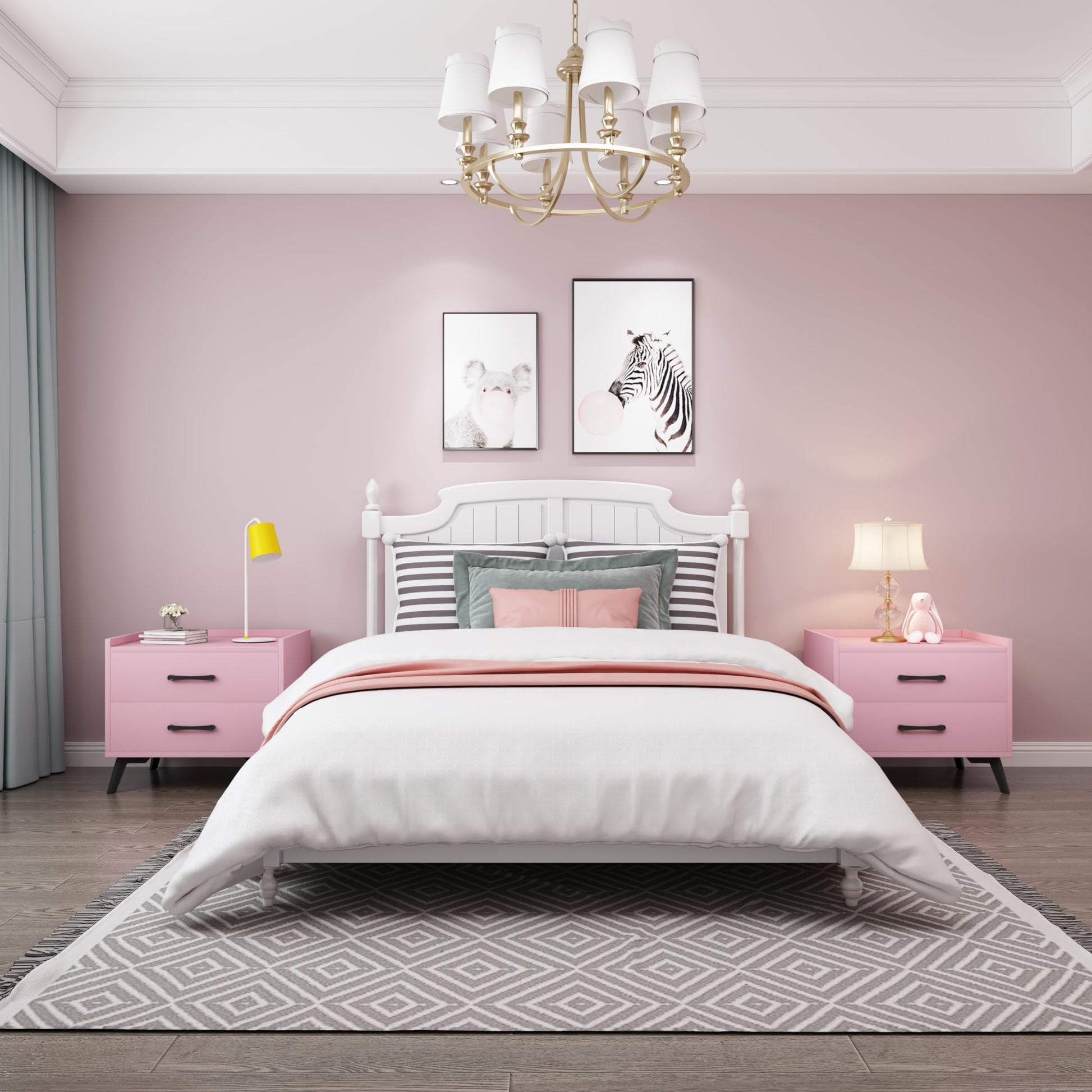 - Our pink nightstand with 2 drawers provides ample storage space for all your essentials, keeping your bedroom clutter-free. Perfect for storing books, glasses, remote controls, and more.