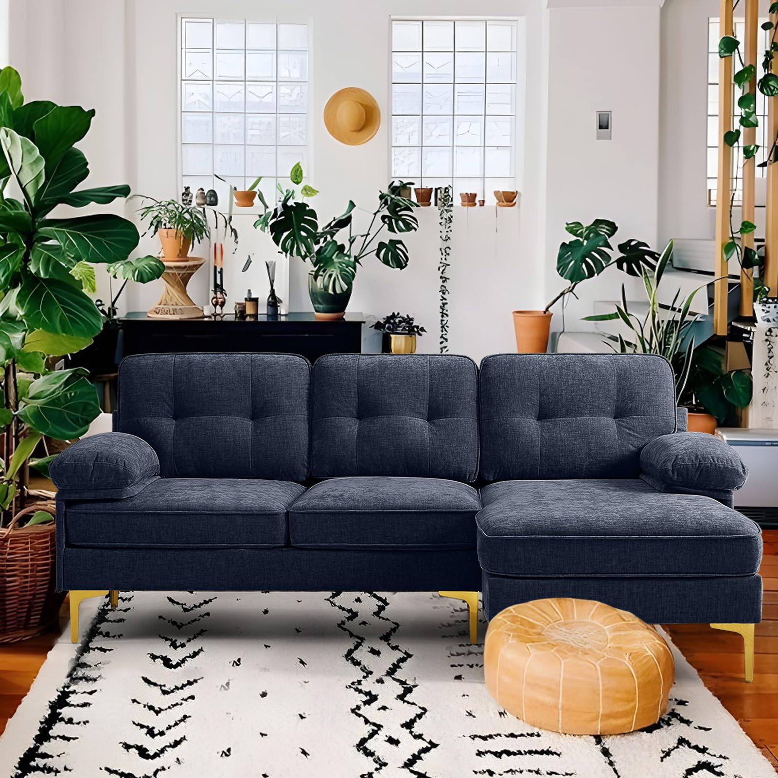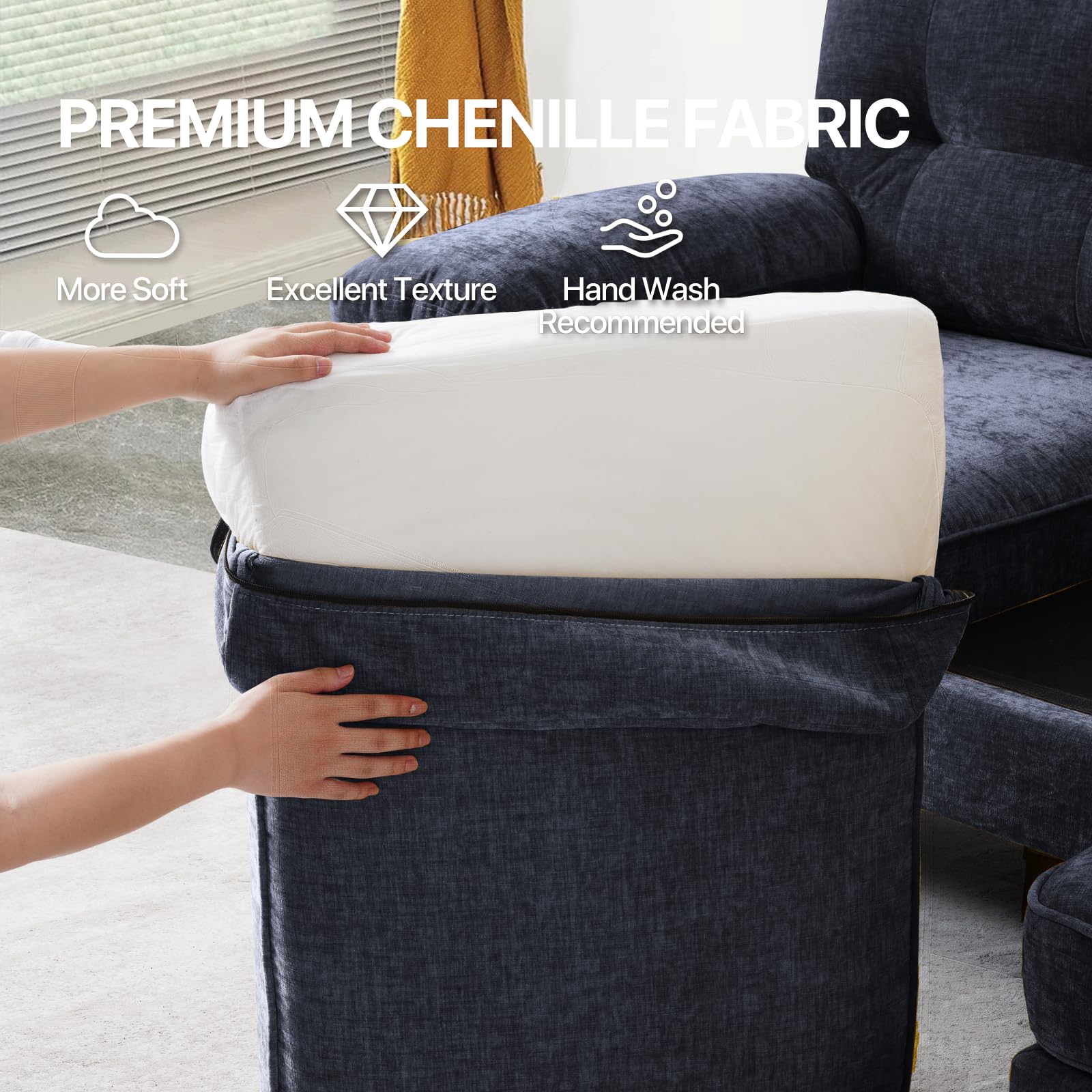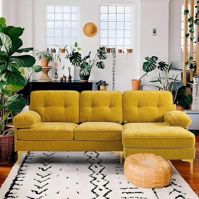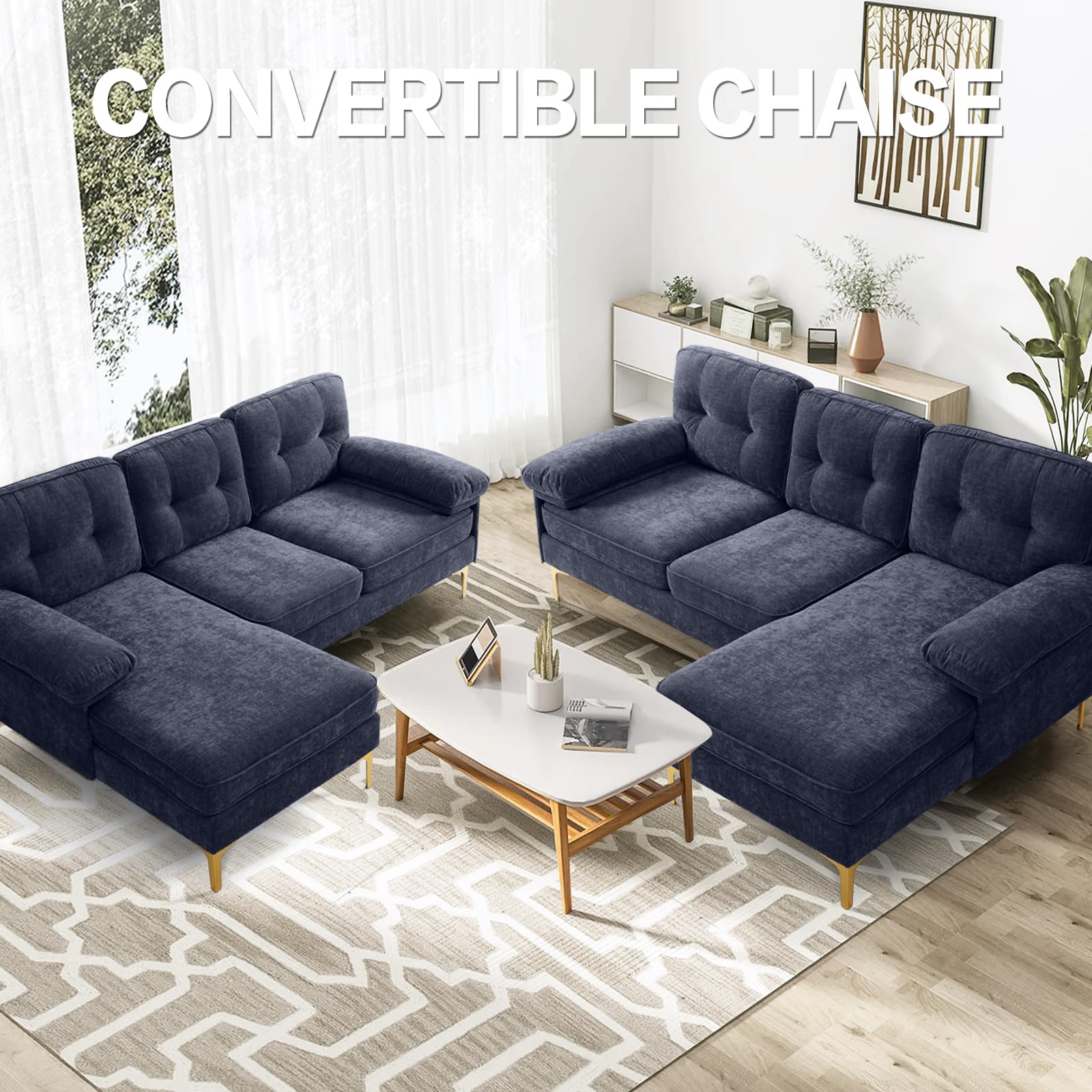 - MODERN STYLE: Modern styled chenille sectional sofa with features a reversible chaise. Solid wood frame, metal legs and removable cushions for machine washable.