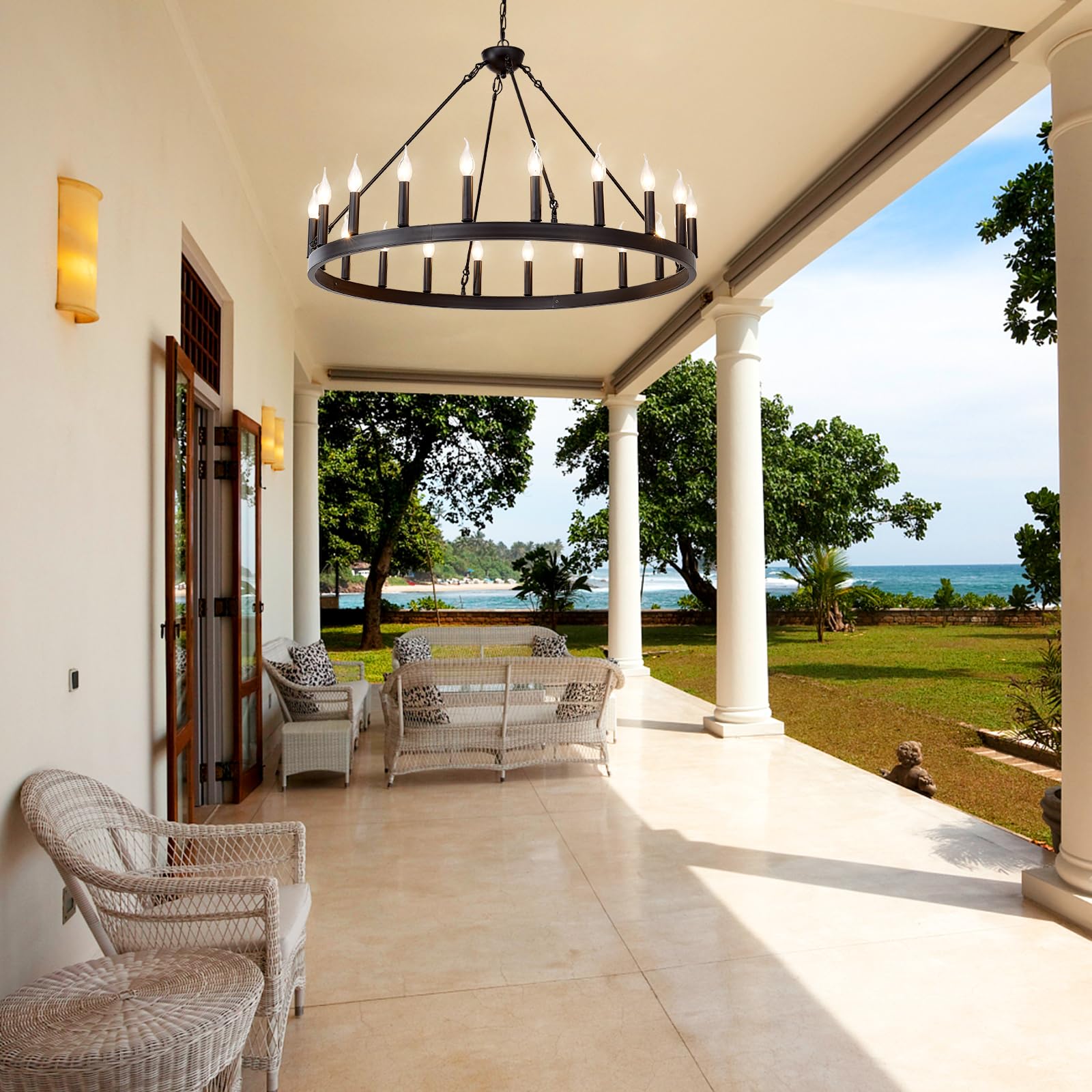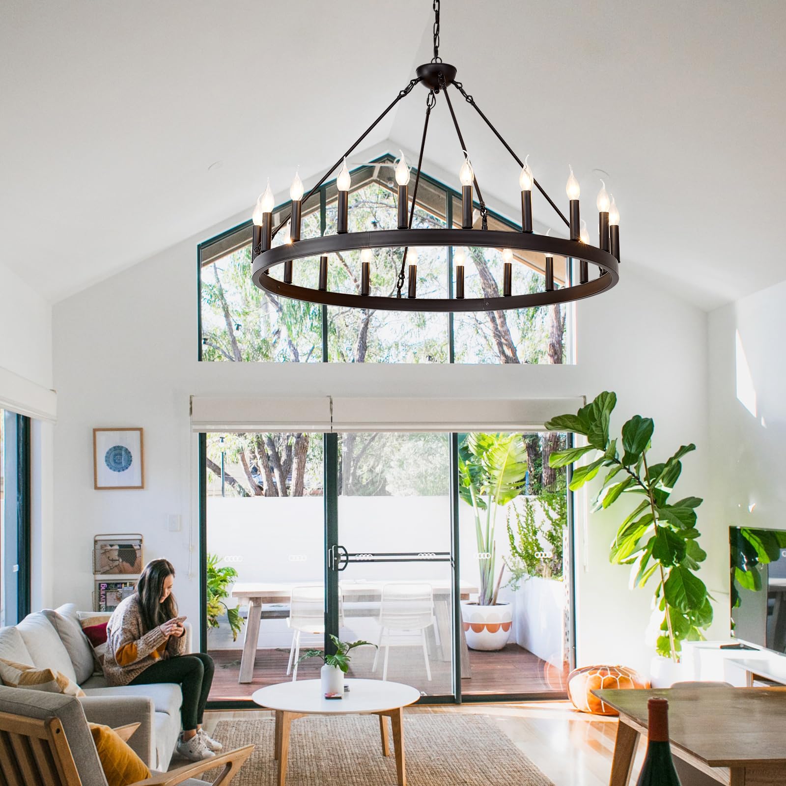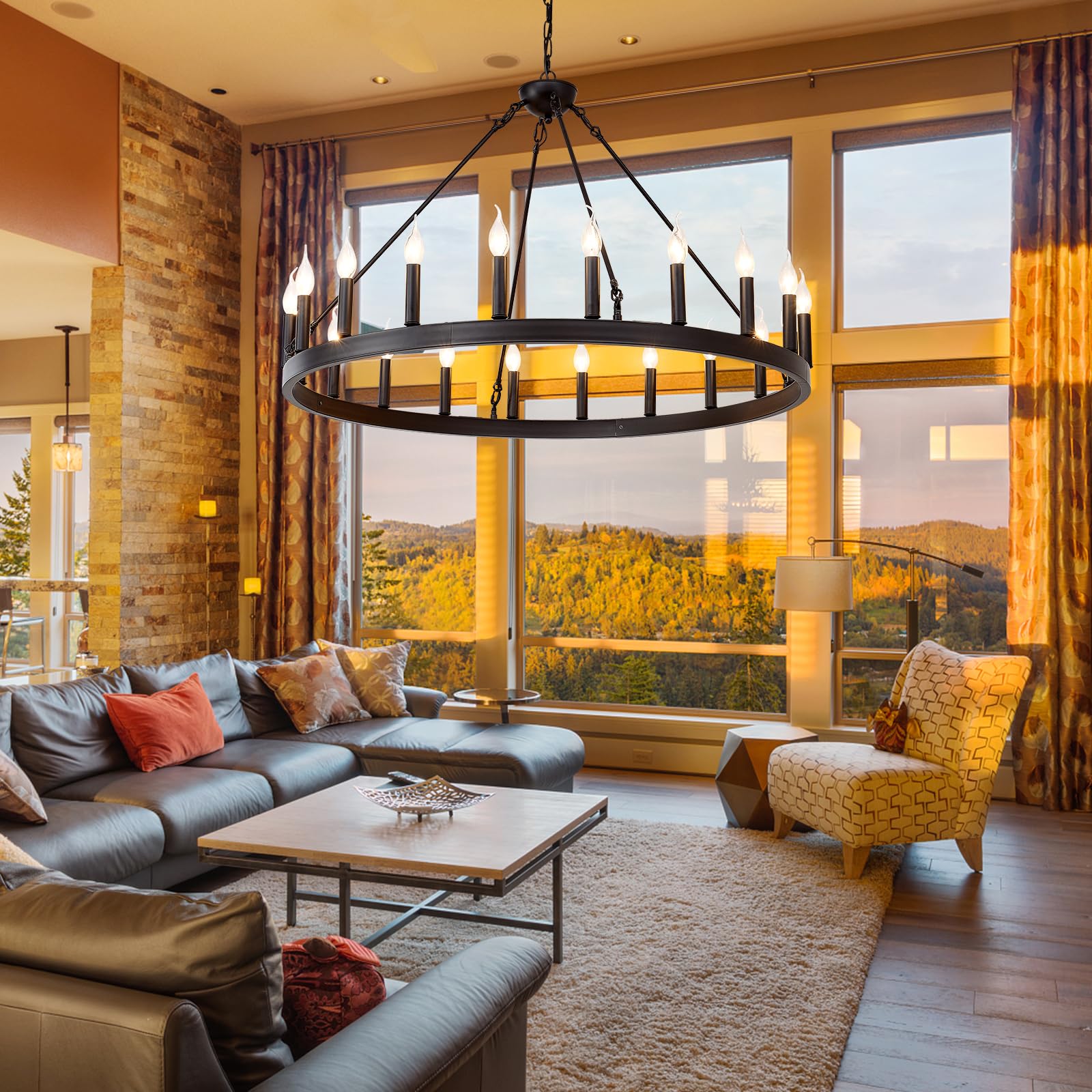 Black Wagon Wheel Chandelier 40 inch,20-Light Farmhouse Wagon Wheel Chandeliers
