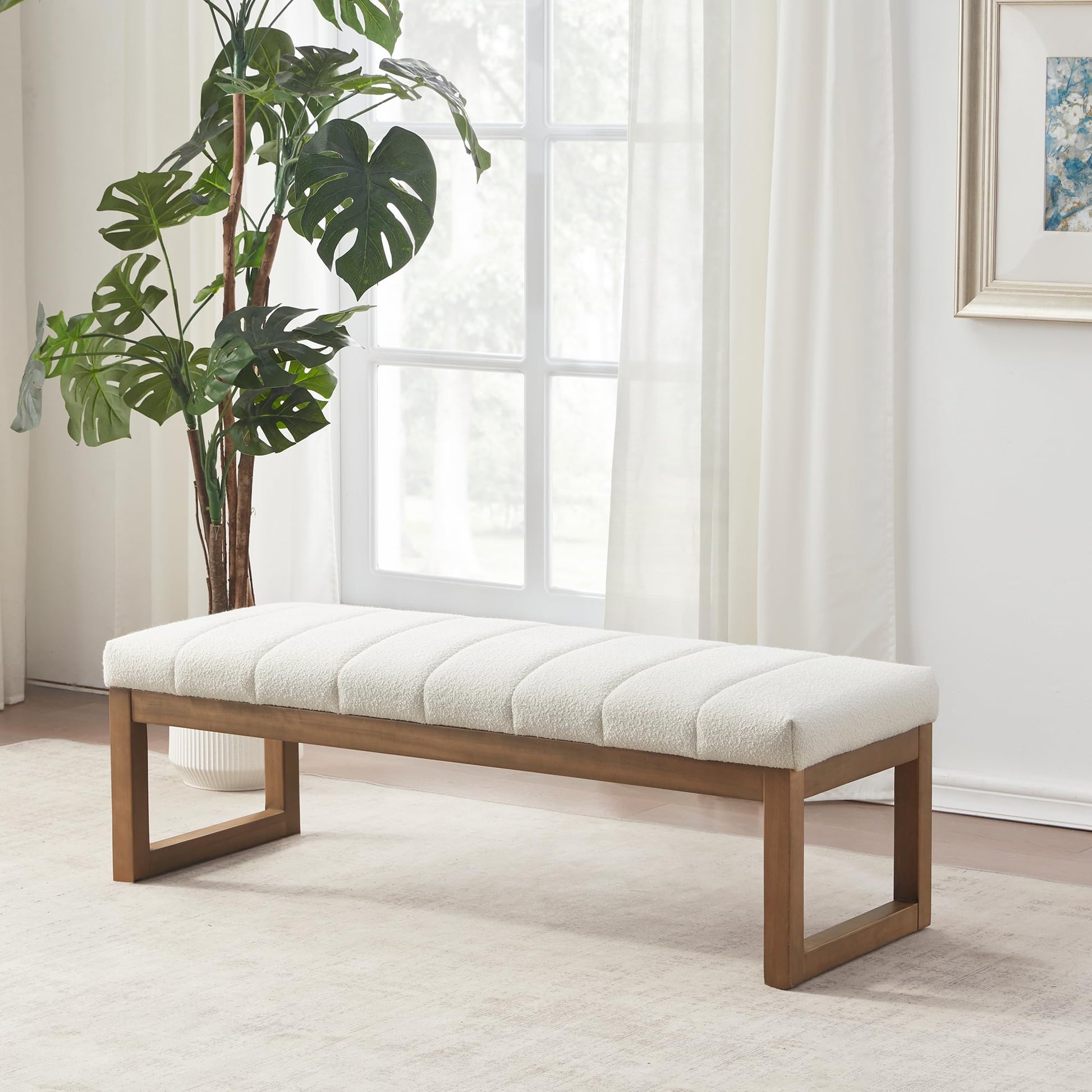 - This boucle bench measures 52.7"Wx 18.9"Dx 17.7"H and is made of solid hardwood, which has excellent stability and safety. It is not easy to deform and can easily withstand 300 pounds without shaking. To prevent scratching the floor and tipping over, we designed pads attached to the bottom foot of the bench