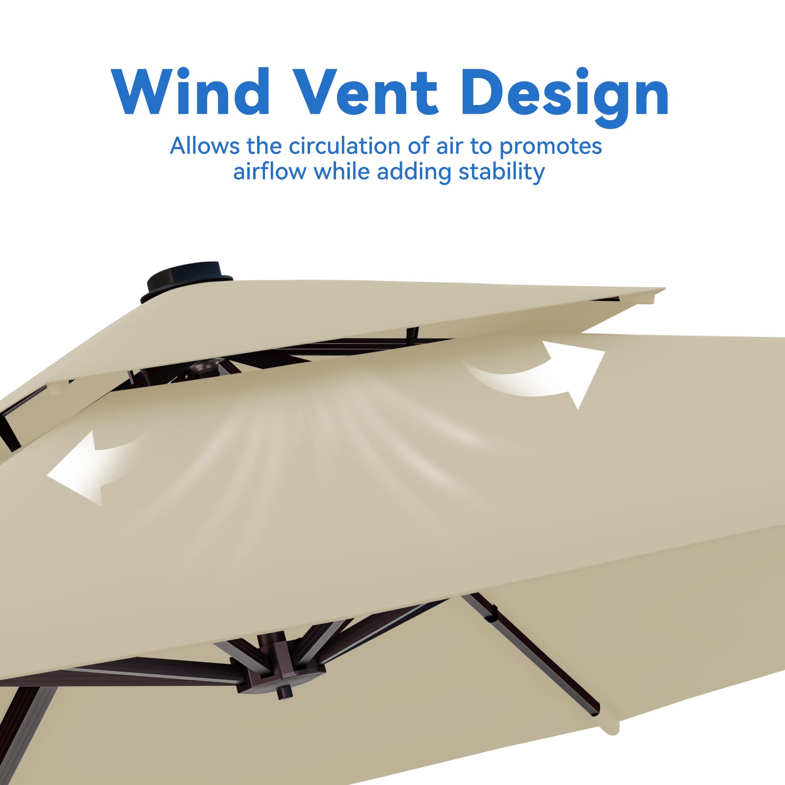 - Double Top Design: The 10*13ft rectangle cantilever umbrellas are made of upgraded high quality 240/gsm yarn-dyed polyester fabric with PU coating. It has excellent water-repellent and fadeless. The double top vent design allows the circulation of air to promotes airflow while adding stability.