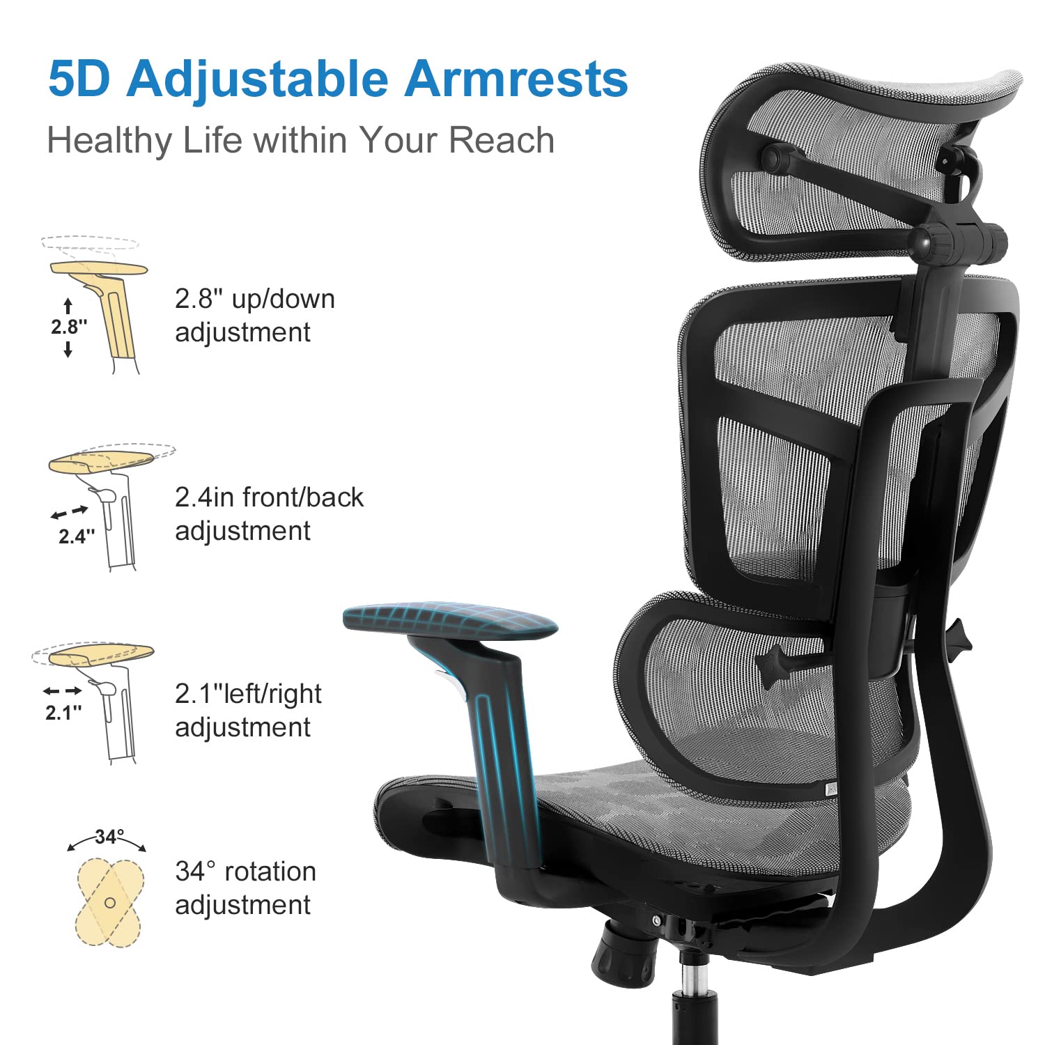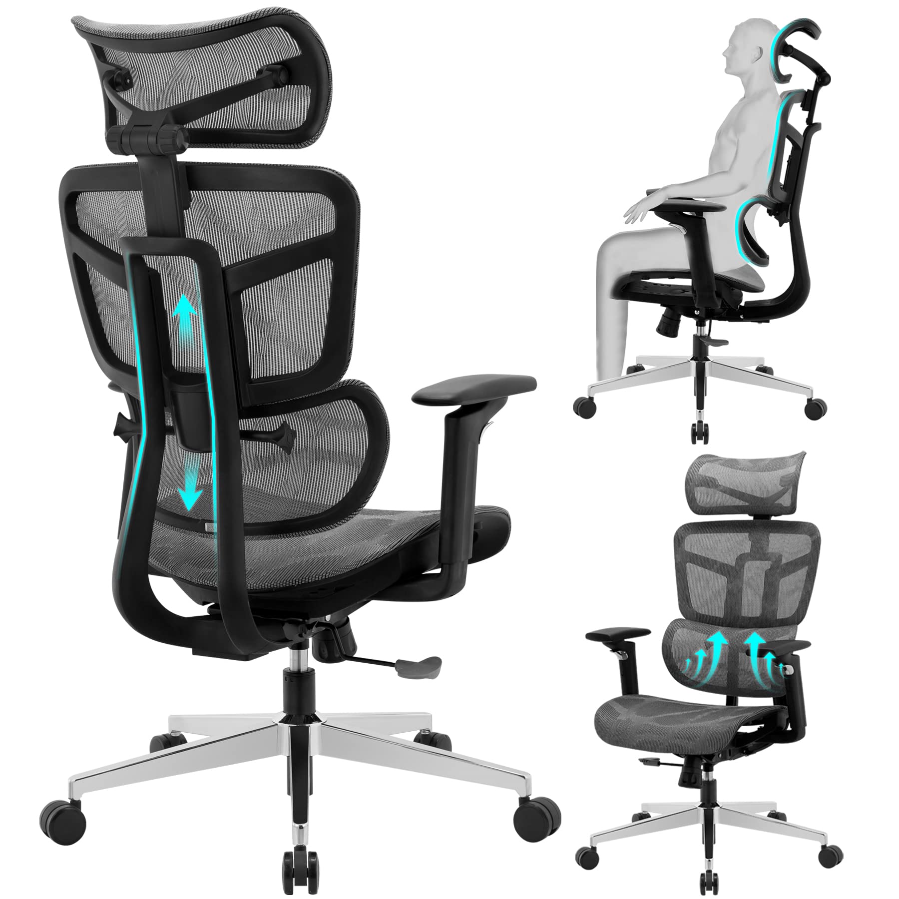 Ergonomic Office Chair High Back Home Office Desk Chairs, Adjustable Back & Lumbar