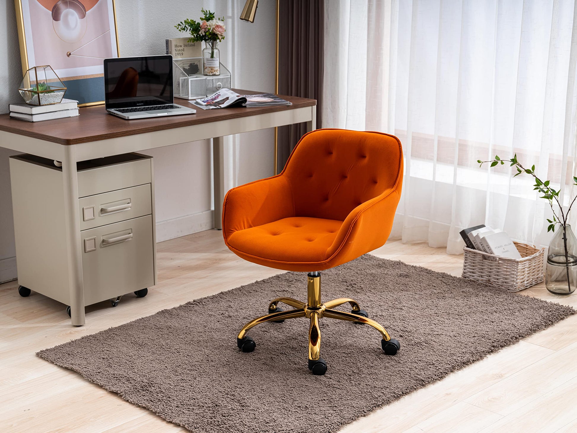 - The home office chair, in fashionable and simple style, is suitable for various scenarios like office, study, living room, bedroom, dining room, dressing room, etc. This is the best choice for your decorating a room or gifting to families and friends.