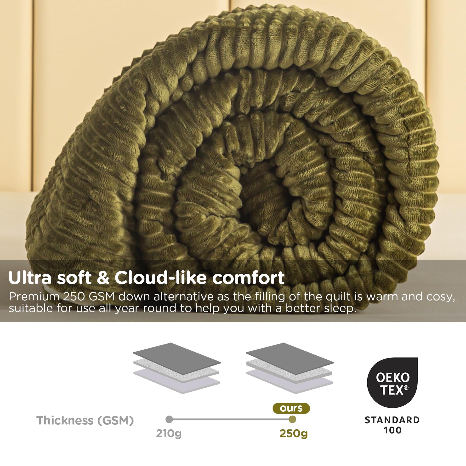 - Soft Material: The Boho style comforter is filled with high quality goose down alternative, the front side is made of Olive Green striped sherpa plush, and the reverse side is made of Oatmeal lustrous thickened flannel microfleece, which will bring you a free and romantic experience of an ethnic look. The quilt is universal for all seasons, and is warm and comfortable, as if being wrapped in clouds lightly and softly, so that you can enjoy a sound sleep all night long!