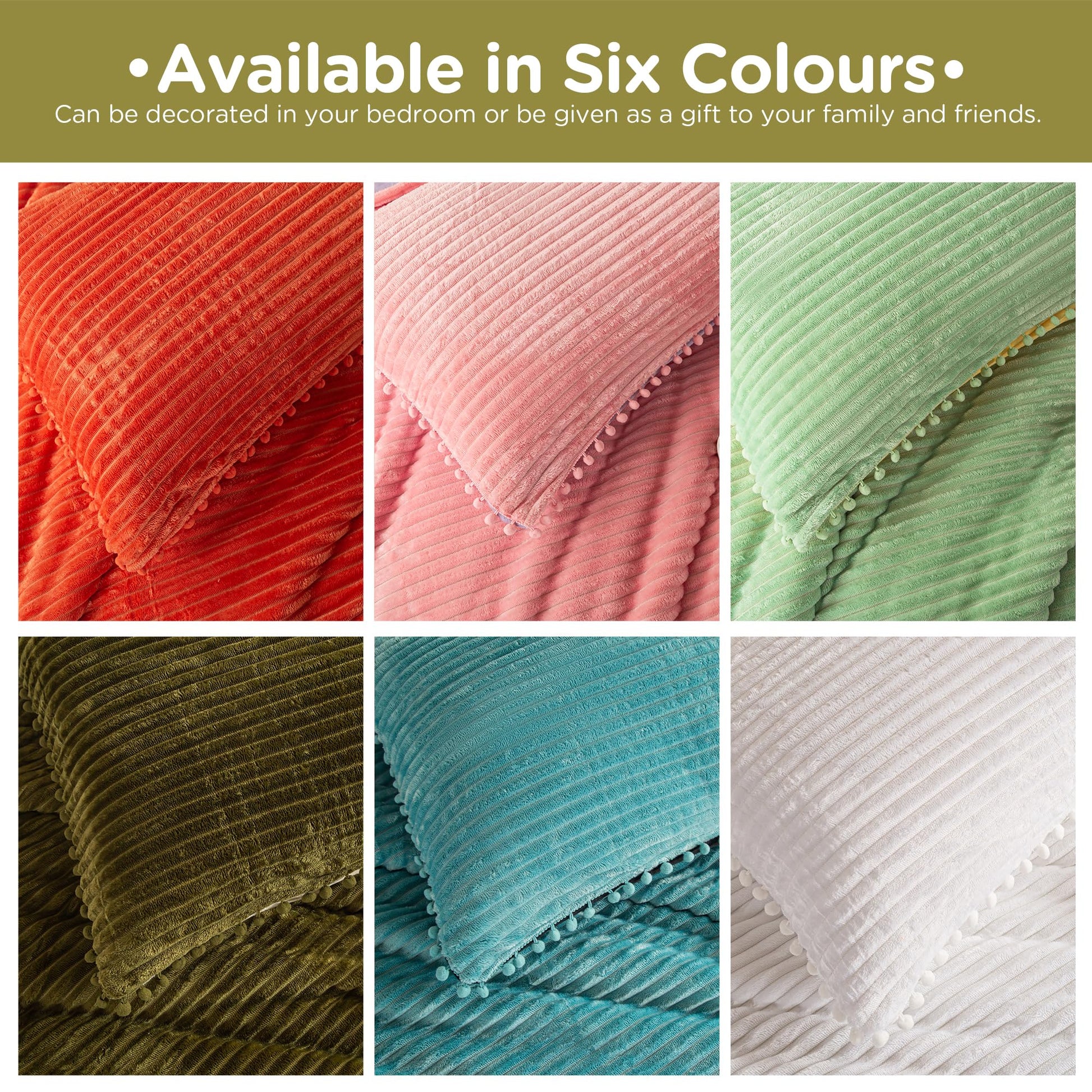 - Suitable for: If you're tired of the plain and boring bedding, perhaps you'd prefer to try this comforter set with pompom design. Bright colors and soft velvet create a simple yet casual, elegant yet luxurious look. Like a winter blanket, doesn't look like a very heavy one, but will still provide you substantial warmth and excellent softness. Can be used not only as an aesthetic decor to decorate your own bedroom, but also as a holiday and birthday gift for your family, friends and kids!