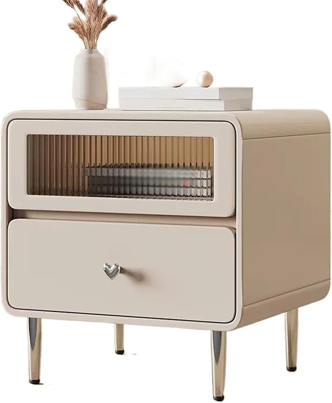 Nightstand Wood Lacquered Glass Nightstand Modern Minimalist Bedside Table Storagee