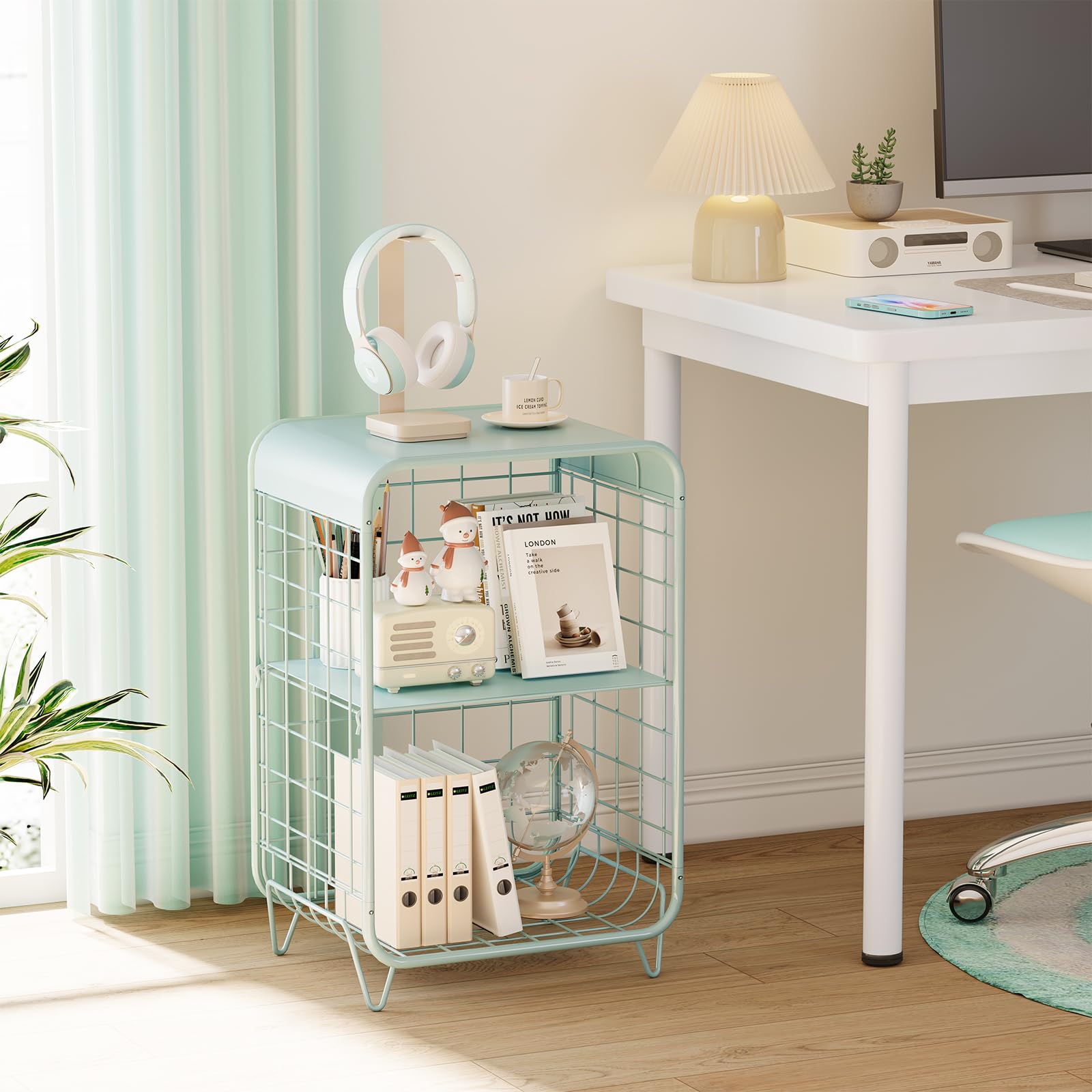 Nightstand,Metal Side Table,3 Tier End Table with Storage,Vintage Bedside Table,Girls