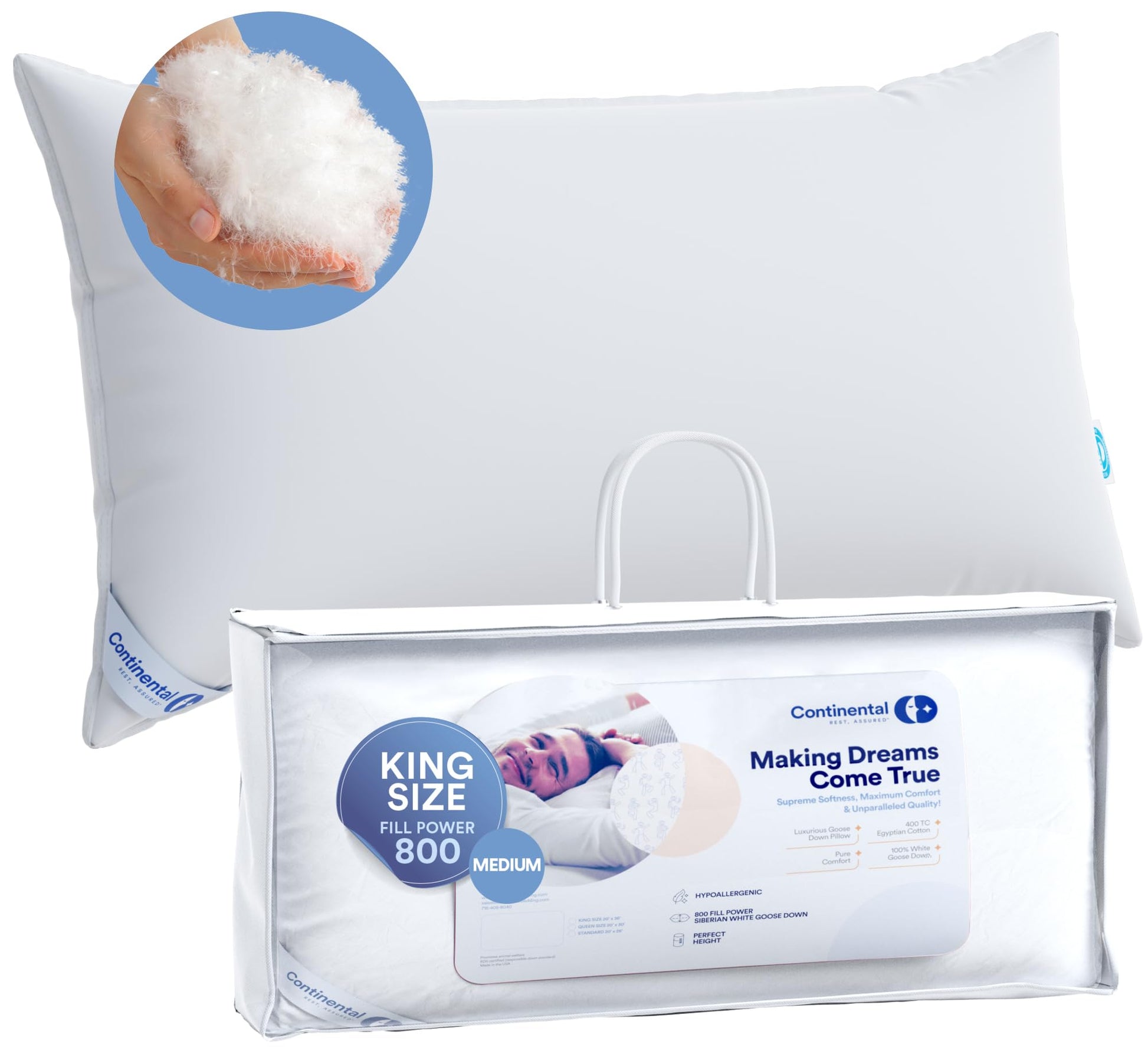 - FAMILY MADE IN NEW YORK, USA - Continental Bedding brings four generations of sleep experience to the bedroom. Decades of supplying down materials to major pillow and comforter manufacturers has inspired our dream to design and craft our own pillows and bedding. We know our stuff inside and out, starting with down that’s humanely processed all through the end products we make in New York. Refinements you won’t find amongst other pillows include more durable hemstitching and deluxe detailing.