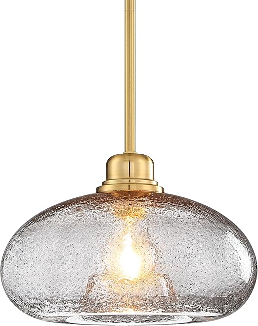 The textured seed glass diffuses light beautifully, creating a warm, inviting atmosphere while the gold accents add a touch of luxury. Each fixture measures 11 inches, providing substantial presence without overwhelming your space.