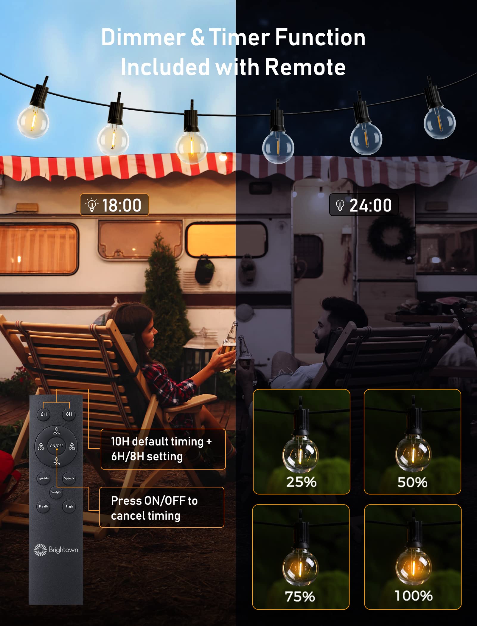 - Set of 2 solar outdoor patio lights can be freely set to 4 brightness level 25%, 50%, 75% and 100%, 6H or 8H timing setting or 10H defalt timing, 4 lighting effects, no need to buy another compatible timer and dimmer
