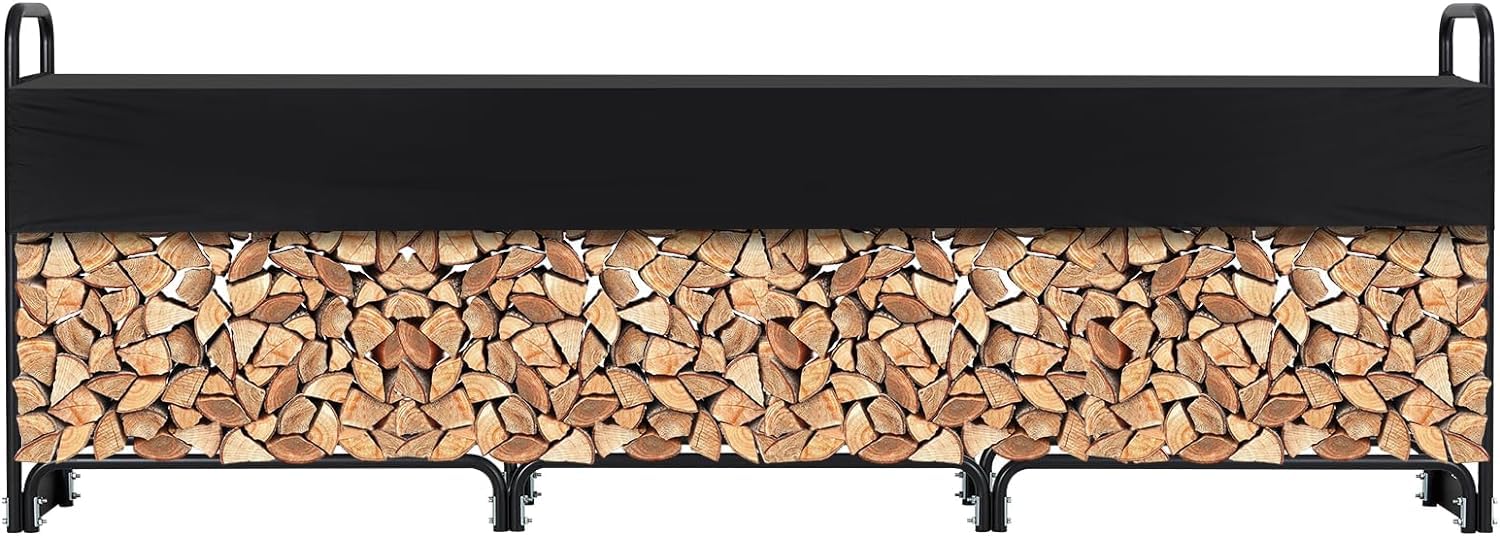 - Resistant & Rust-Proof**: Constructed from high-quality steel and coated with a black anti-rust finish, this wood rack outdoor is designed to withstand the elements. The included waterproof cover further protects your firewood from rain and snow.