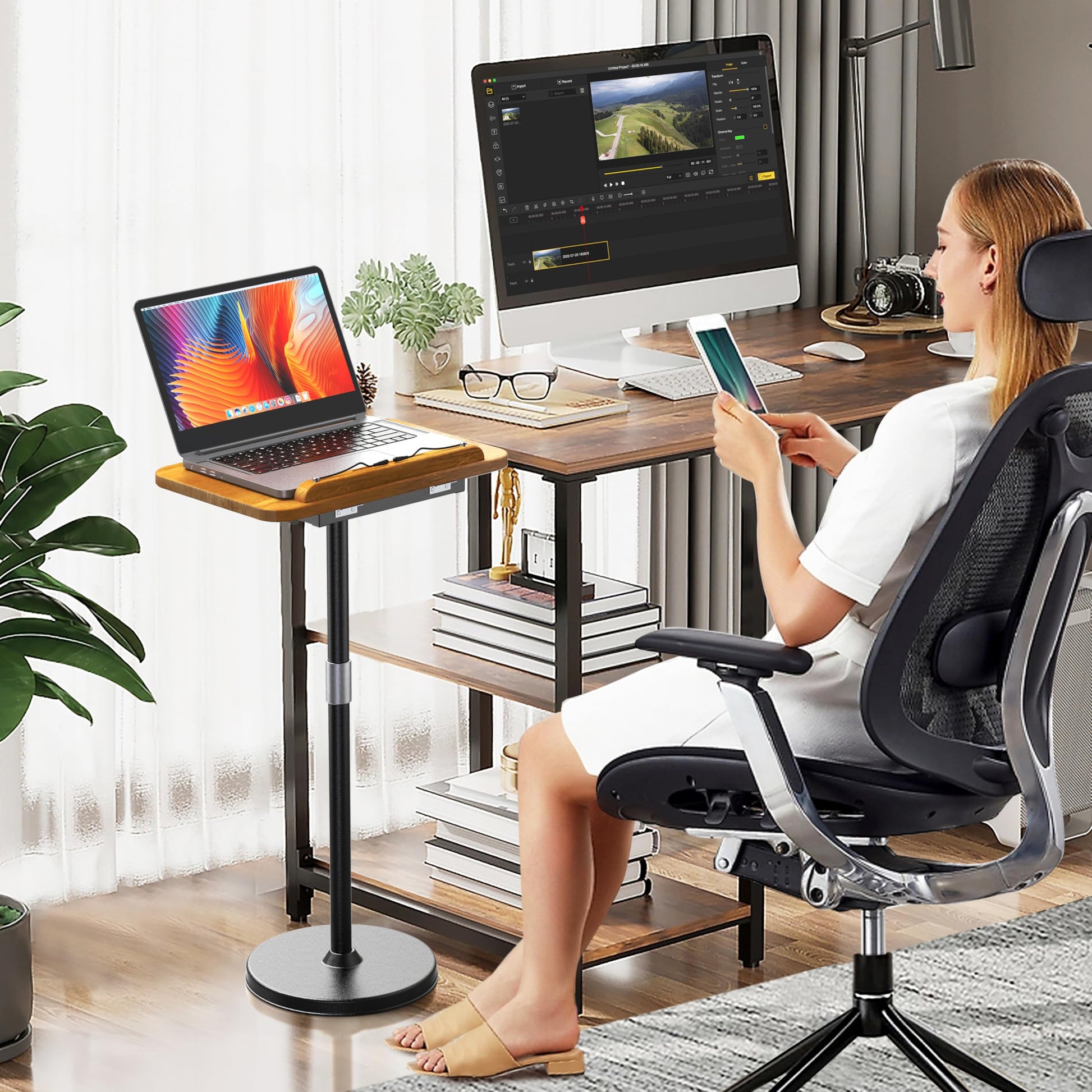 - Height and Angle Adjustable: This laptop table stand adjusts from 16.5 to 51 inches in height and tilts from 0° to 65°, ensuring ergonomic comfort. Whether sitting or standing, it reduces spinal and eye strain. Additionally, this adjustment feature is also ideal for projector use, allowing easy angle adjustments for a clear, aligned image