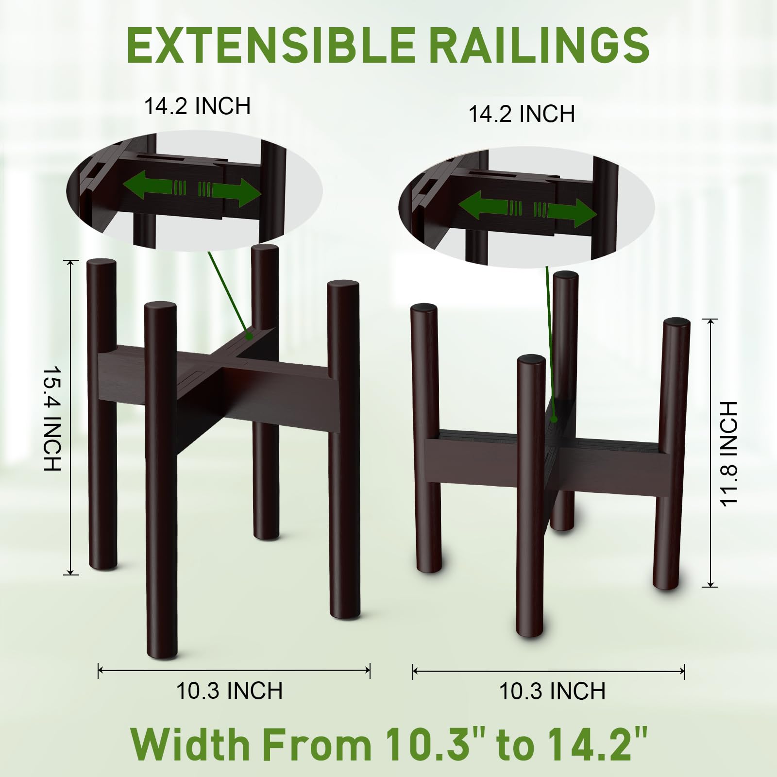 2 Pack Bamboo Plant Stands, Adjustable Plant Stand Indoor, Mid Century