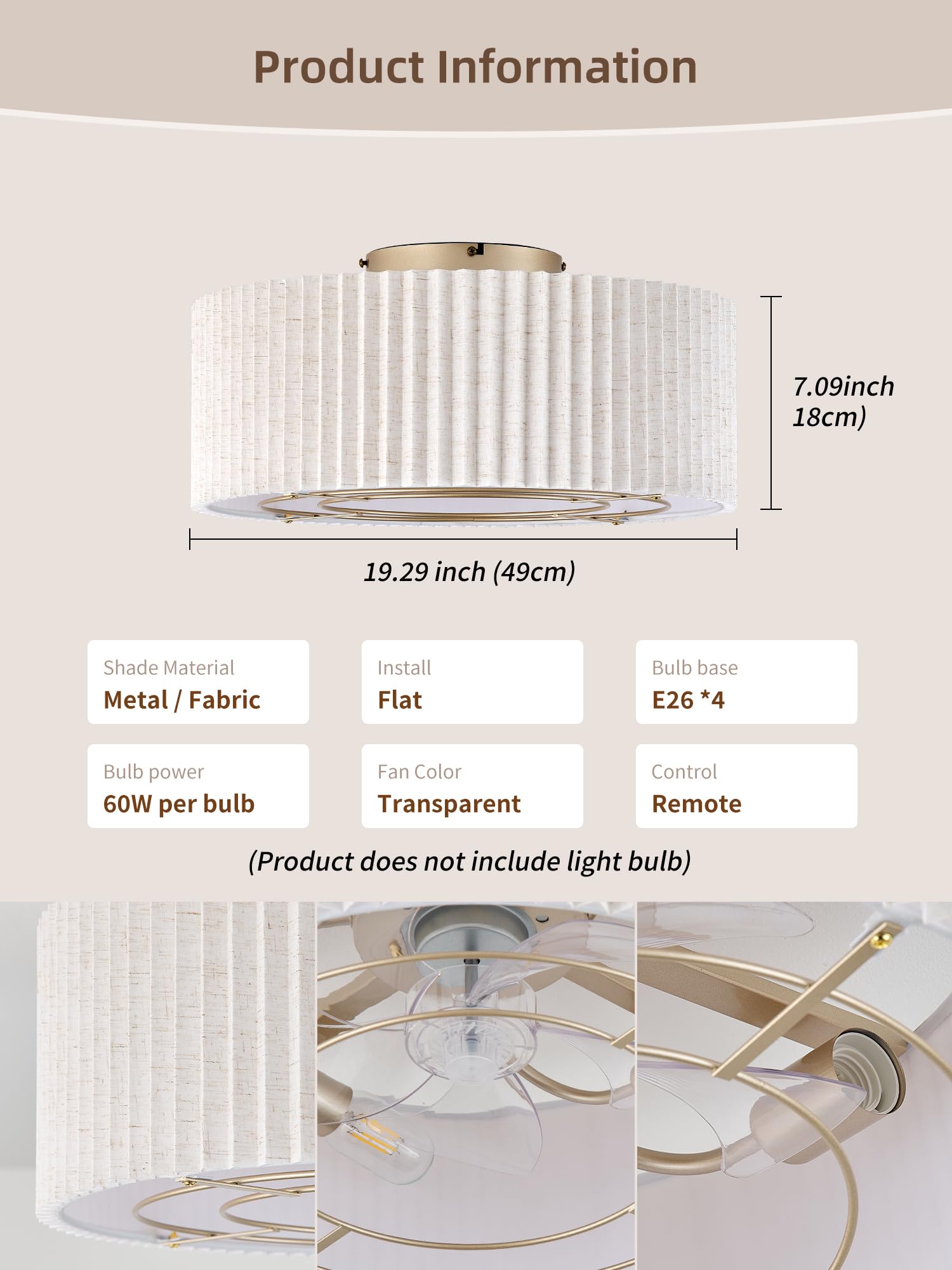 Premium Flush Mount Ceiling Fan with Integrated Lighting