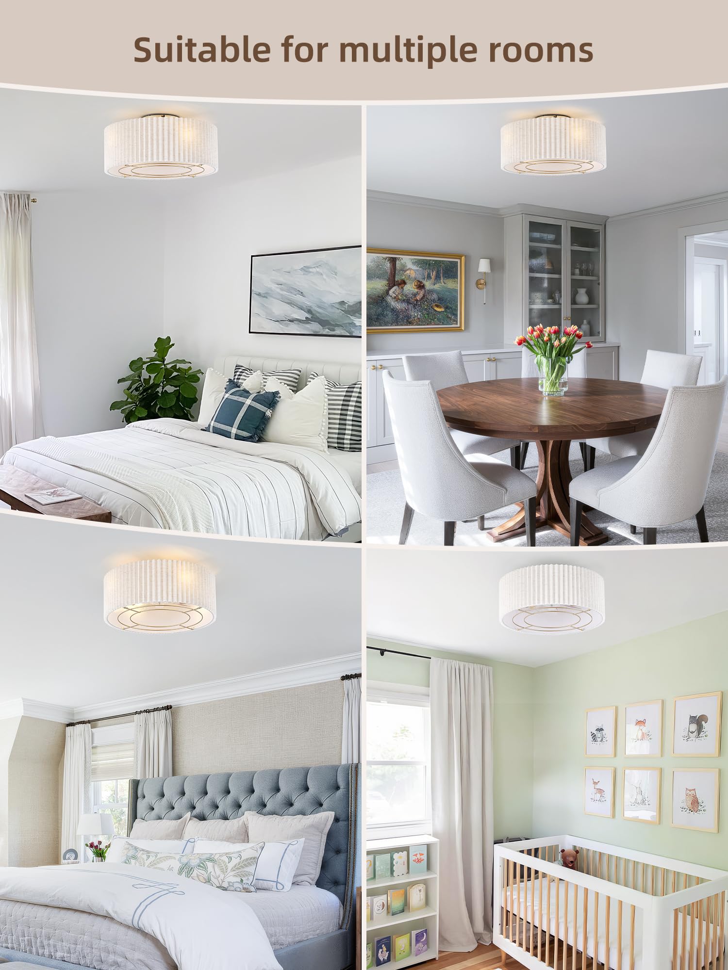 - Low profile flush mount design ideal for rooms with 8-foot ceilings