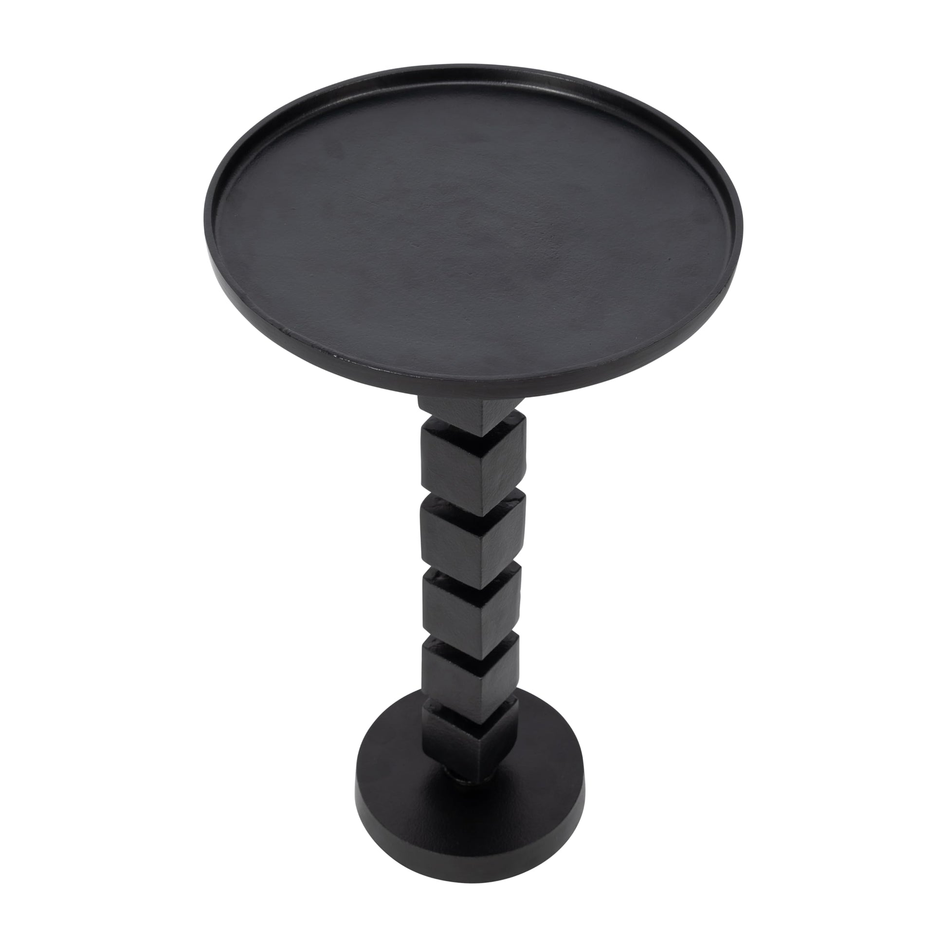 26" H Black Aluminum Stacked Disc Accent Table with Twisted Pedestal