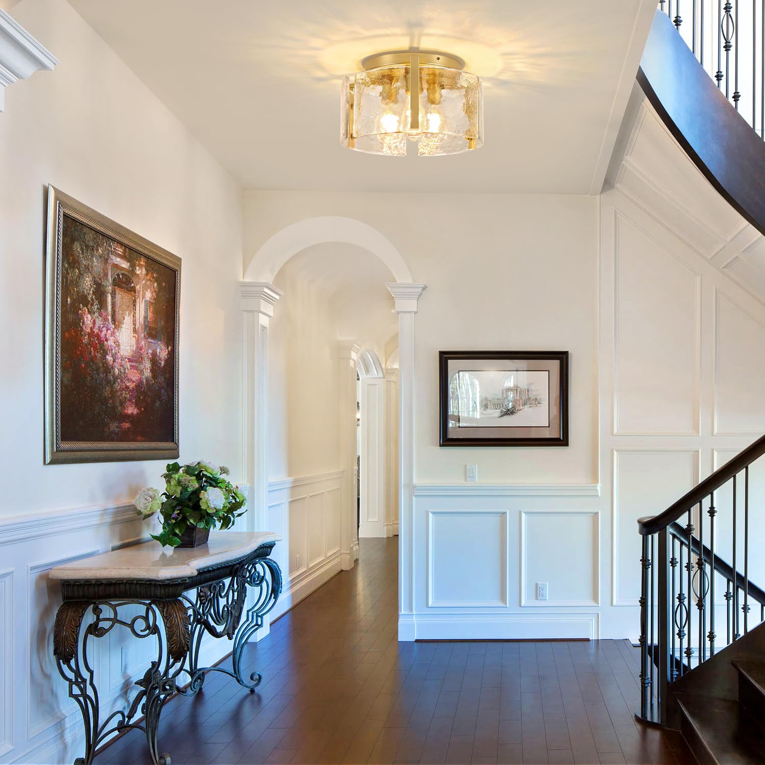 - Easy Installation: The overall structure of these hallway ceiling light fixtures is very simple. This bedroom ceiling light fixture includes installation instructions and all necessary accessories. Simply fix the lamp holder and the glass shade together, install the gold flush mount ceiling light on the home circuit, and insert the bulb. You'll have a perfect flush mount ceiling lighting fixture in no time