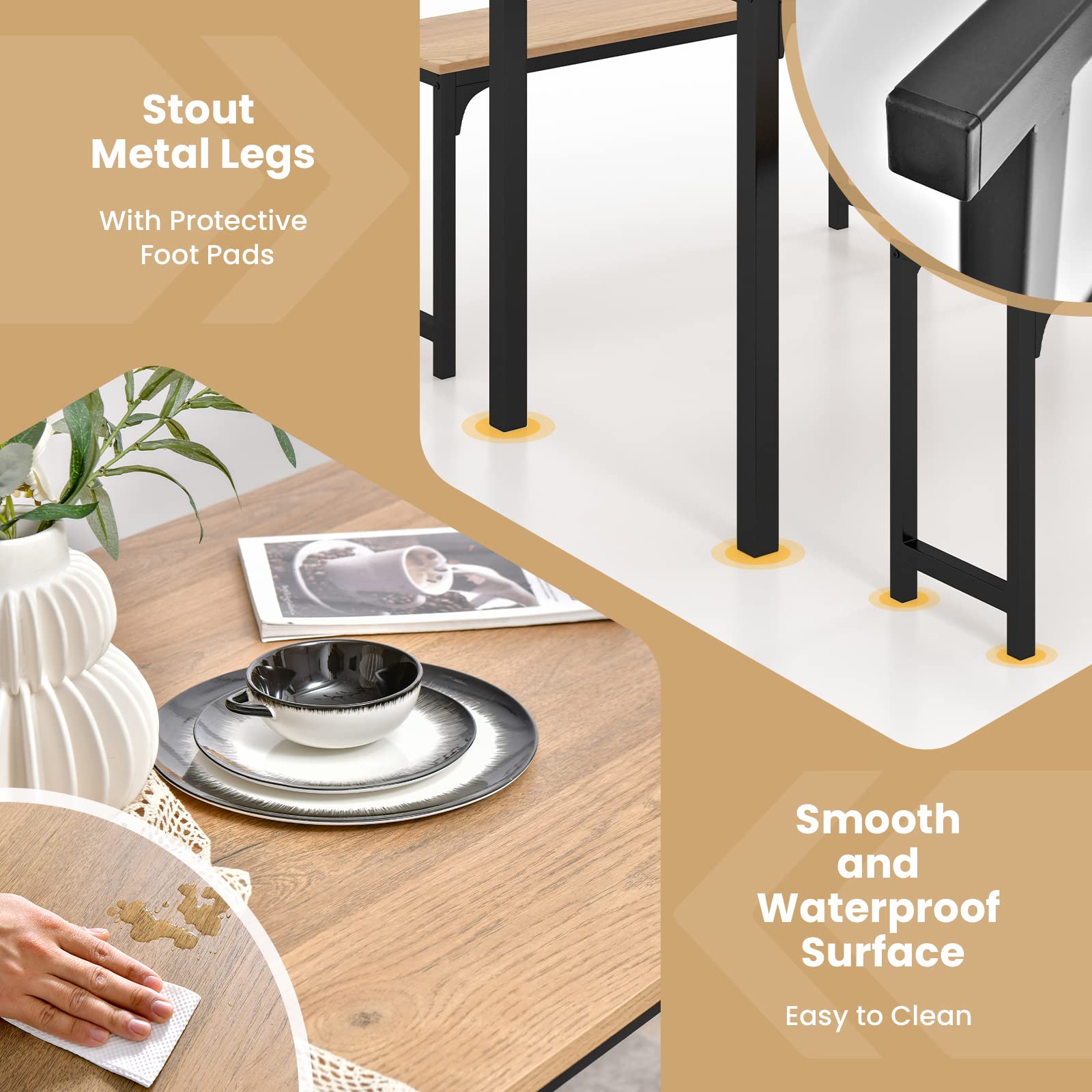 Transform your kitchen or dining room with this contemporary 3-piece dining table set. Designed for modern living spaces, this rectangular table with two matching benches offers a sleek, space-efficient solution for intimate meals and gatherings. The warm light oak finish paired with a sturdy metal frame creates an inviting atmosphere while maximizing your floor space.