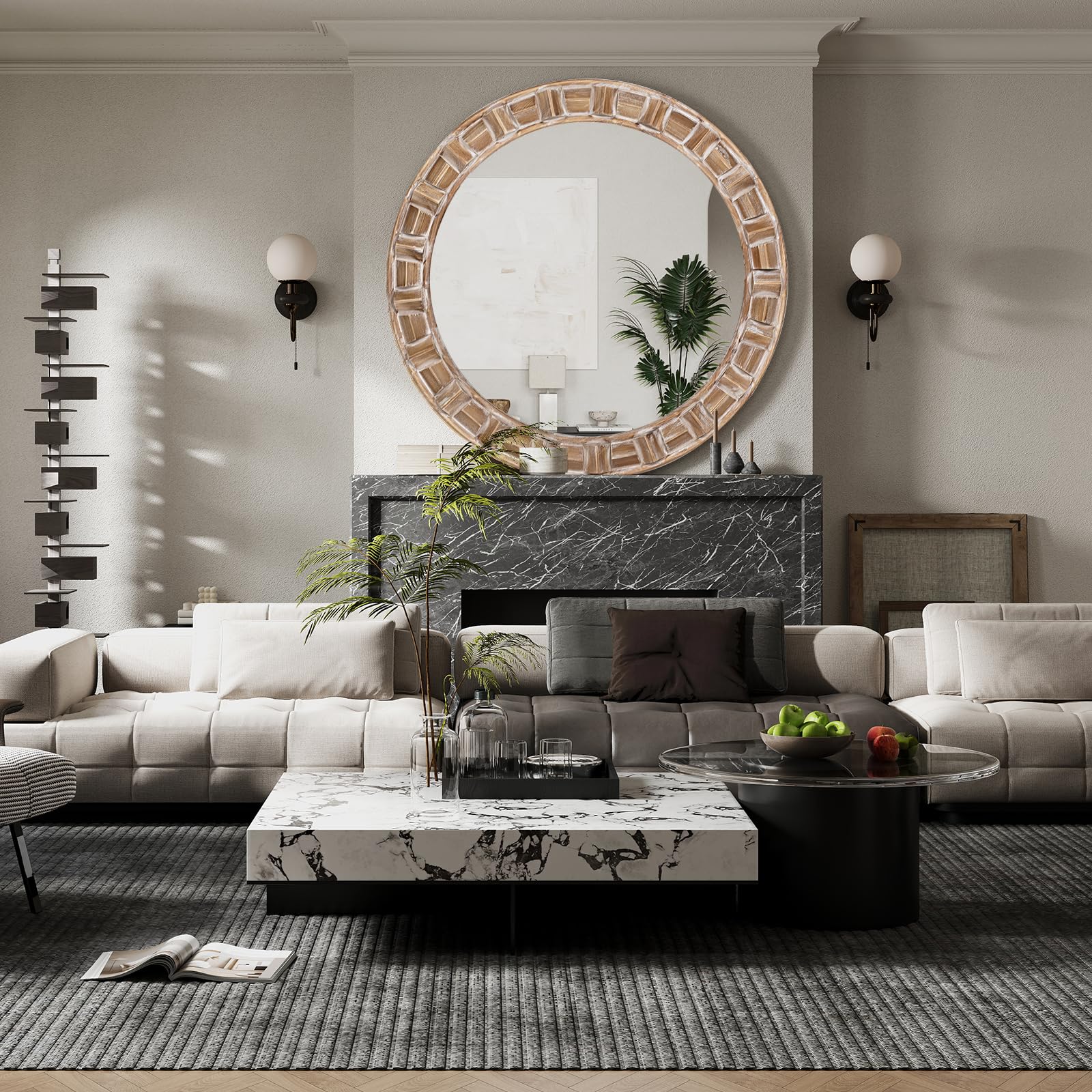 30 Inch Round Wood Mirror Boho Entryway Rustic Decorative Farmhouse Mirrors