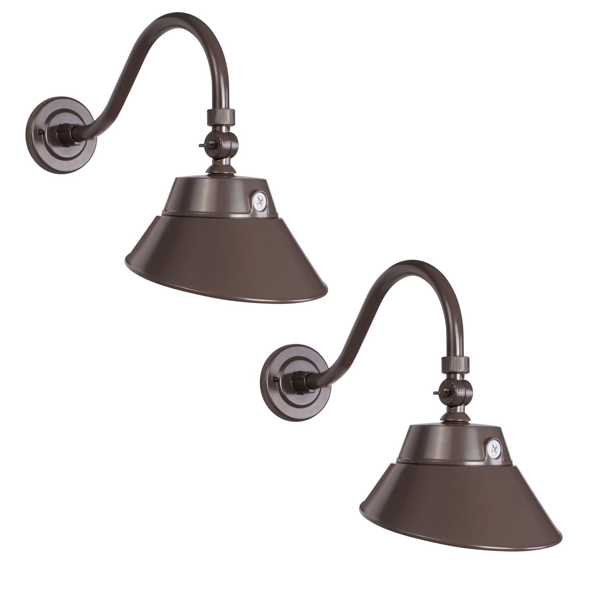 LED Brown Gooseneck Barn Light Fixture, 10in Diameter with 15.7in. Long Gooseneck Arm
