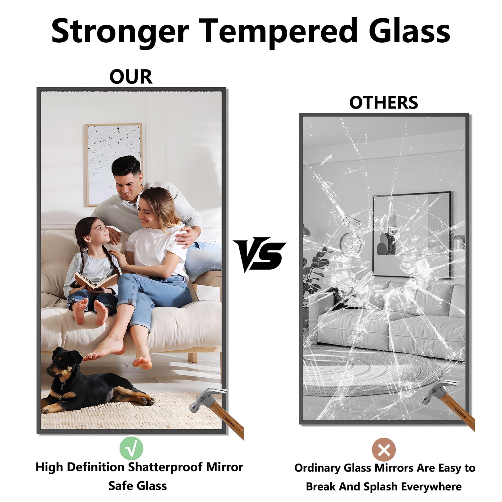 This versatile large mirror works beautifully in bathrooms as an over-sink vanity mirror, in bedrooms as a full-length dressing mirror, or in living rooms and entryways to create the illusion of more space and light.