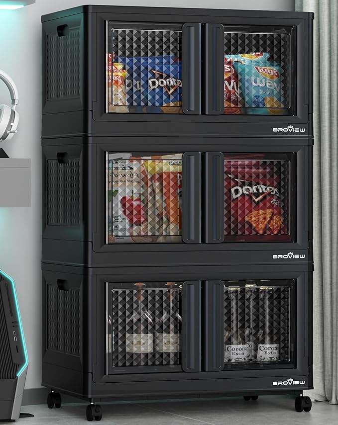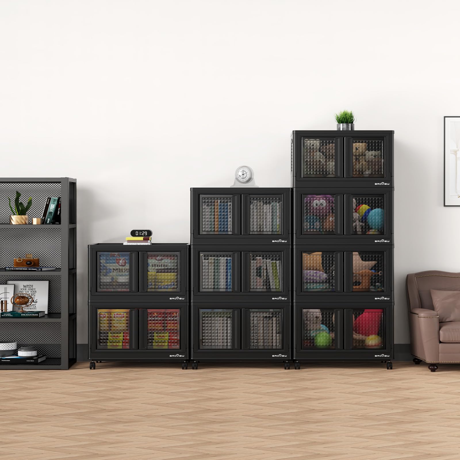 - You can stack different numbers of plastic storage bins you want, such as bedside cabinets, clothes cabinets, bookcases, kitchen cabinets, etc. With roomy capacity, odorless, and foldable design, these storage containers are perfect for your closet organizer, laundry organizer, trunk organizer, garage tote, playroom storage, book storage shelves, classroom bins, and dorm storage box.