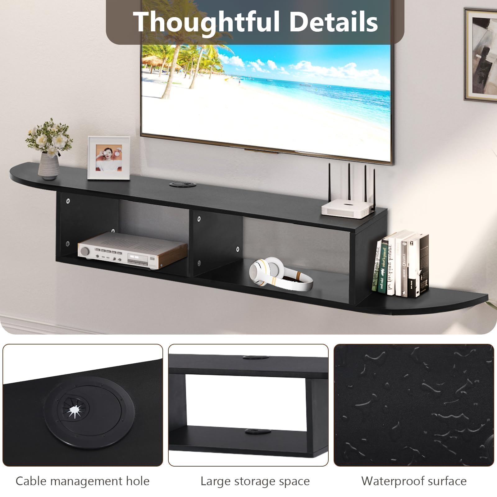 - Cable Management: The floating shelf for under TV is designed with cord holes to prevent cords from tangling and can hide cluttered cords. Keep your belongings organized, the tabletop is waterproof and easy to keep clean
