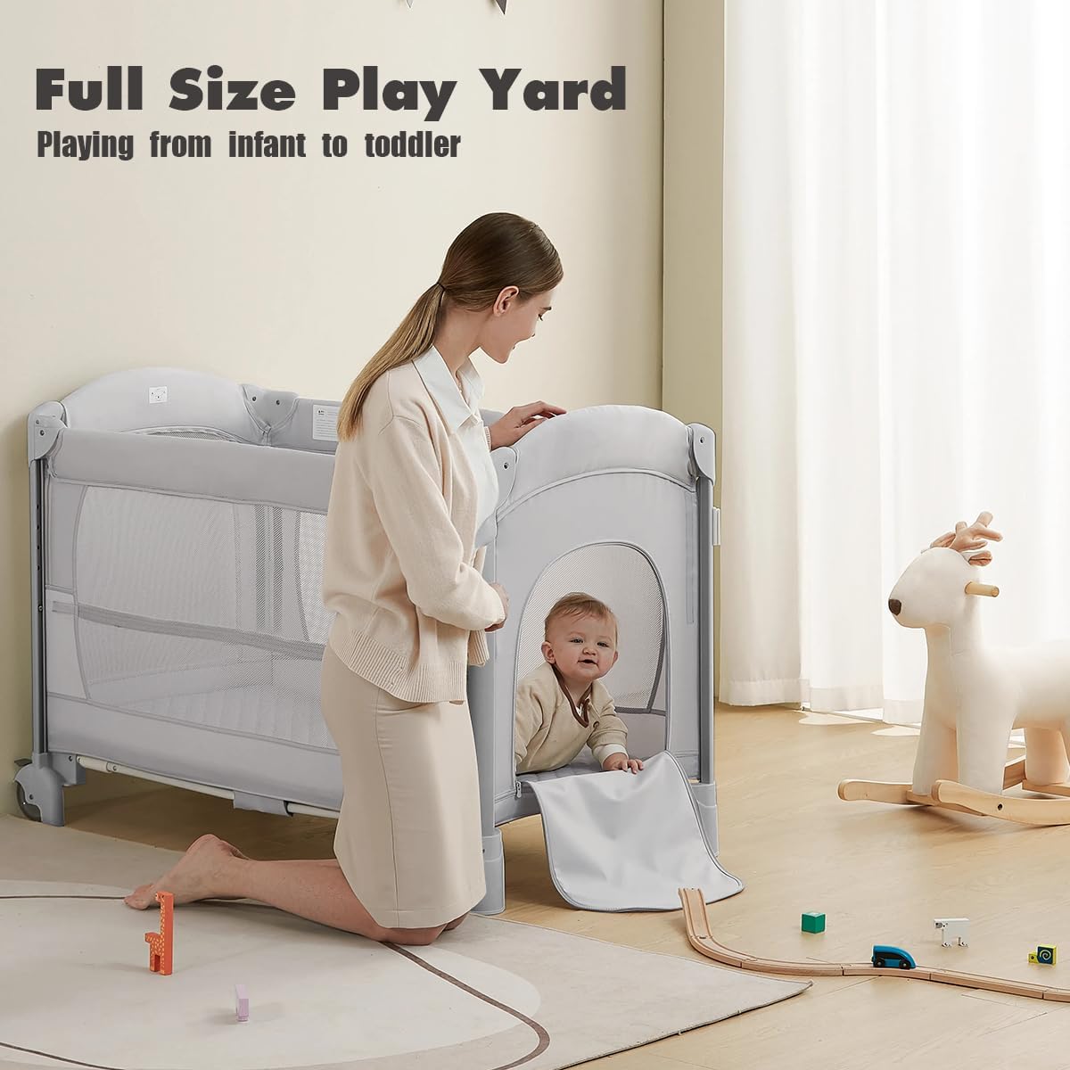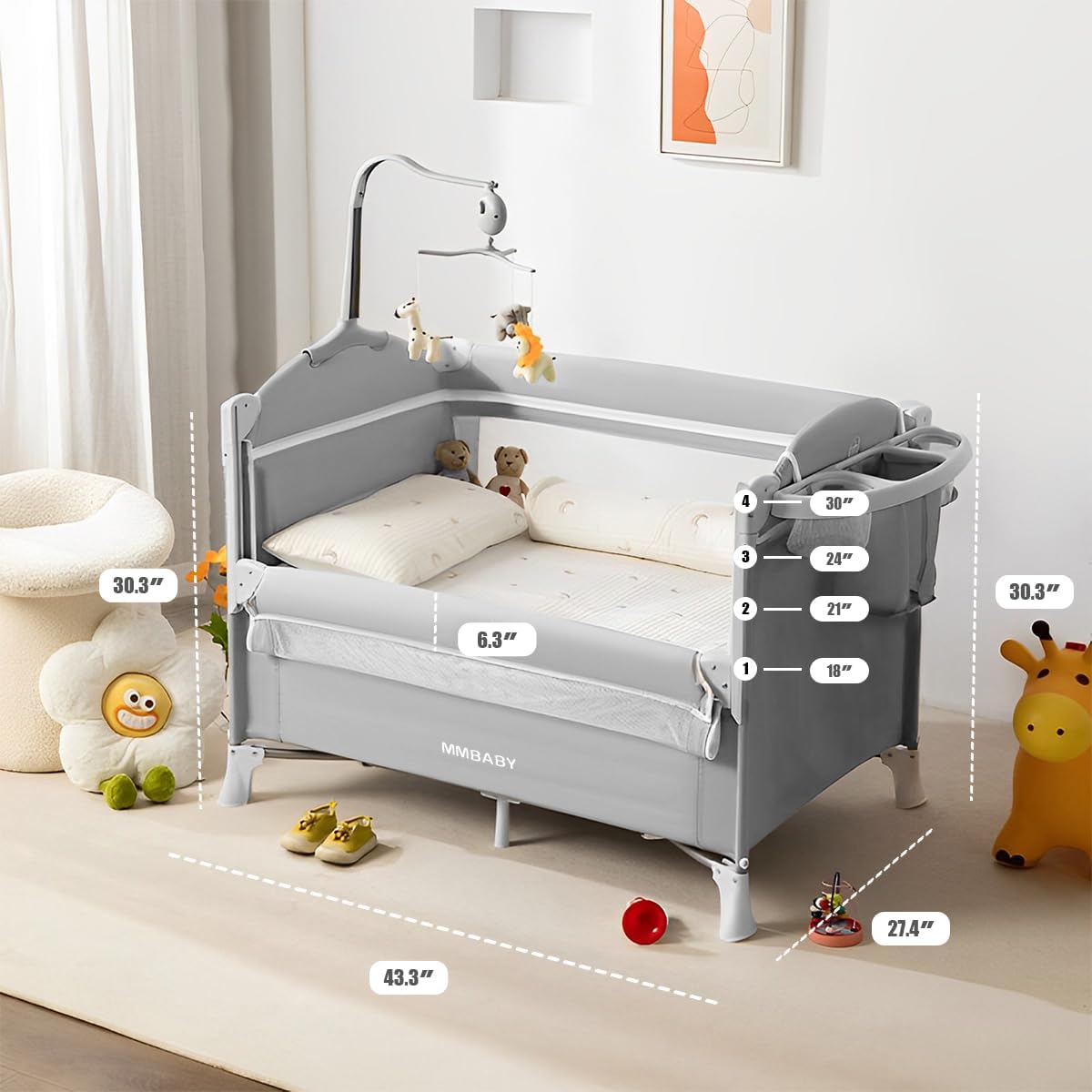 5-in-1 Playpen Portable Crib for Baby,Multifunction Bedside Crib from